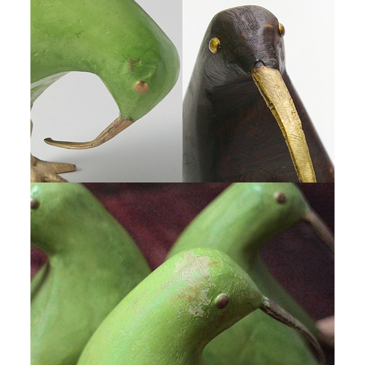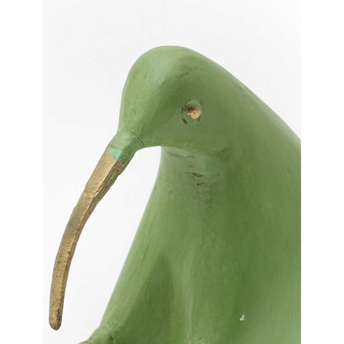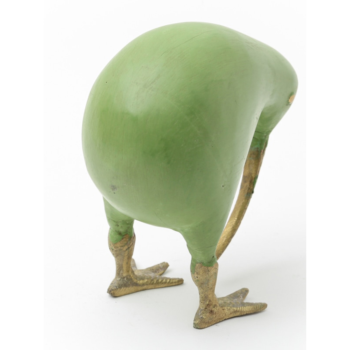 ペイントされた木製のボディに真鍮のくちばし、羽、脚がついています。