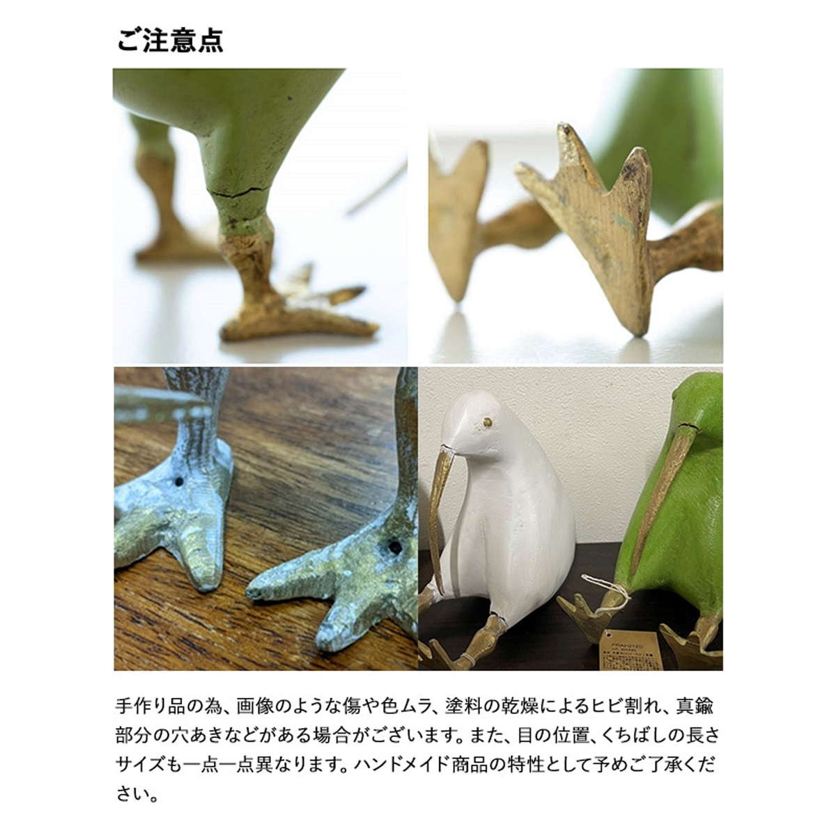 また、目の位置、くちばしの長さ、サイズも1点、1点異なります。