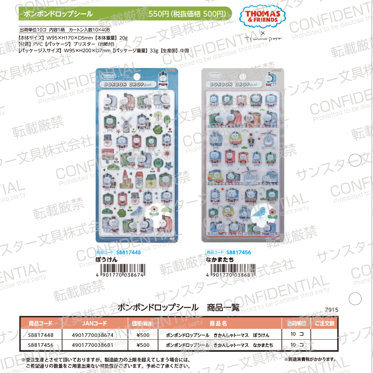 年齢問わず大人気!ボンボンドロップシールからきかんしゃトーマスが登場です!こちらの商品は大変人気のため、メーカー生産限界数を超えた場合、予約をキャンセルさせていただくことがあり得ます。予めご了承のうえ、ご発注お願いいたします