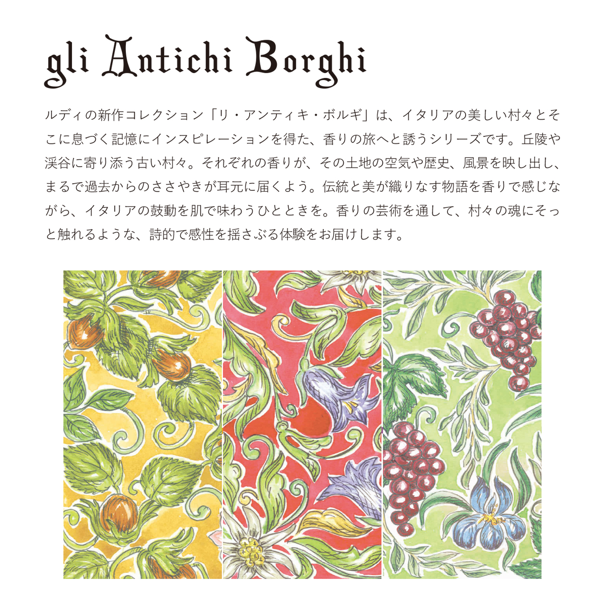 イタリアの美しい村々とそこに息づく記憶にインスピレーションを得た、香りの旅へと誘うシリーズです。