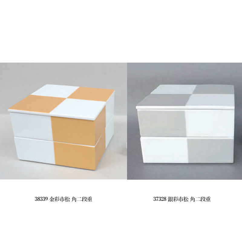 【日本製】金彩・銀彩市松 重箱 お重 食器 正月