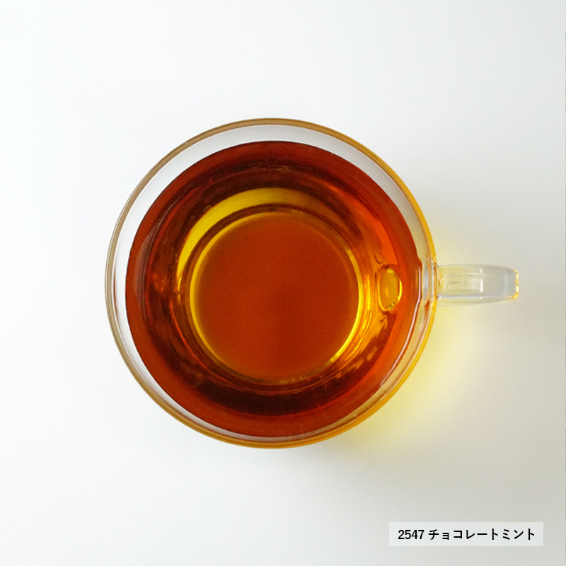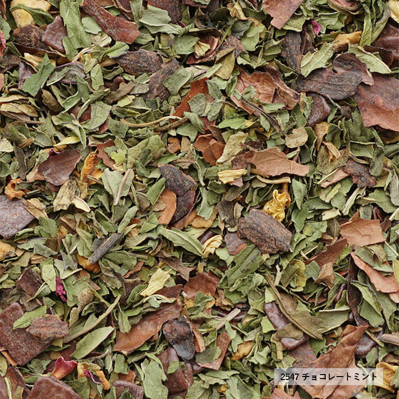 2547 チョコレートミント【ドイツ産】:ペパーミント、カカオシェル、カカオ加工品(砂糖、カカオマス)、アップル、サンフラワー、ローズ/香料、乳化剤(大豆由来)