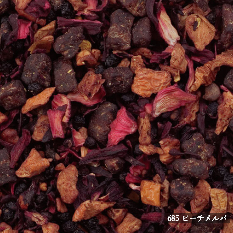 685 ピーチメルバ:ハイビスカス、ピーチビッツ(ピーチ、米粉)、アップル、エルダーベリー、サンフラワー/香料