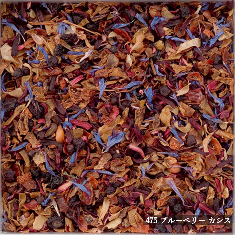 475 ブルーベリー カシス:ハイビスカス、ローズヒップ、アップル、ブルーベリー、ブラックカラント、コーンフラワー/香料