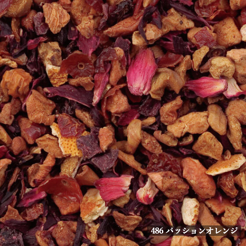 486 パッションオレンジ:アップル、ハイビスカス、ローズヒップ、ビートルート、オレンジピール、リコリス、オレンジジュースビッツ/香料