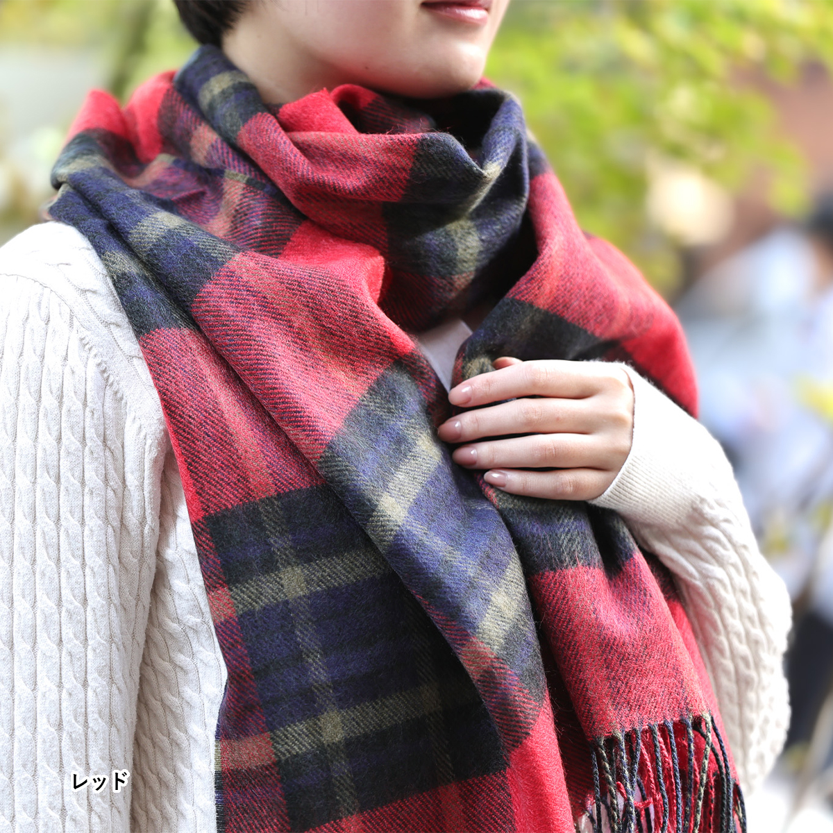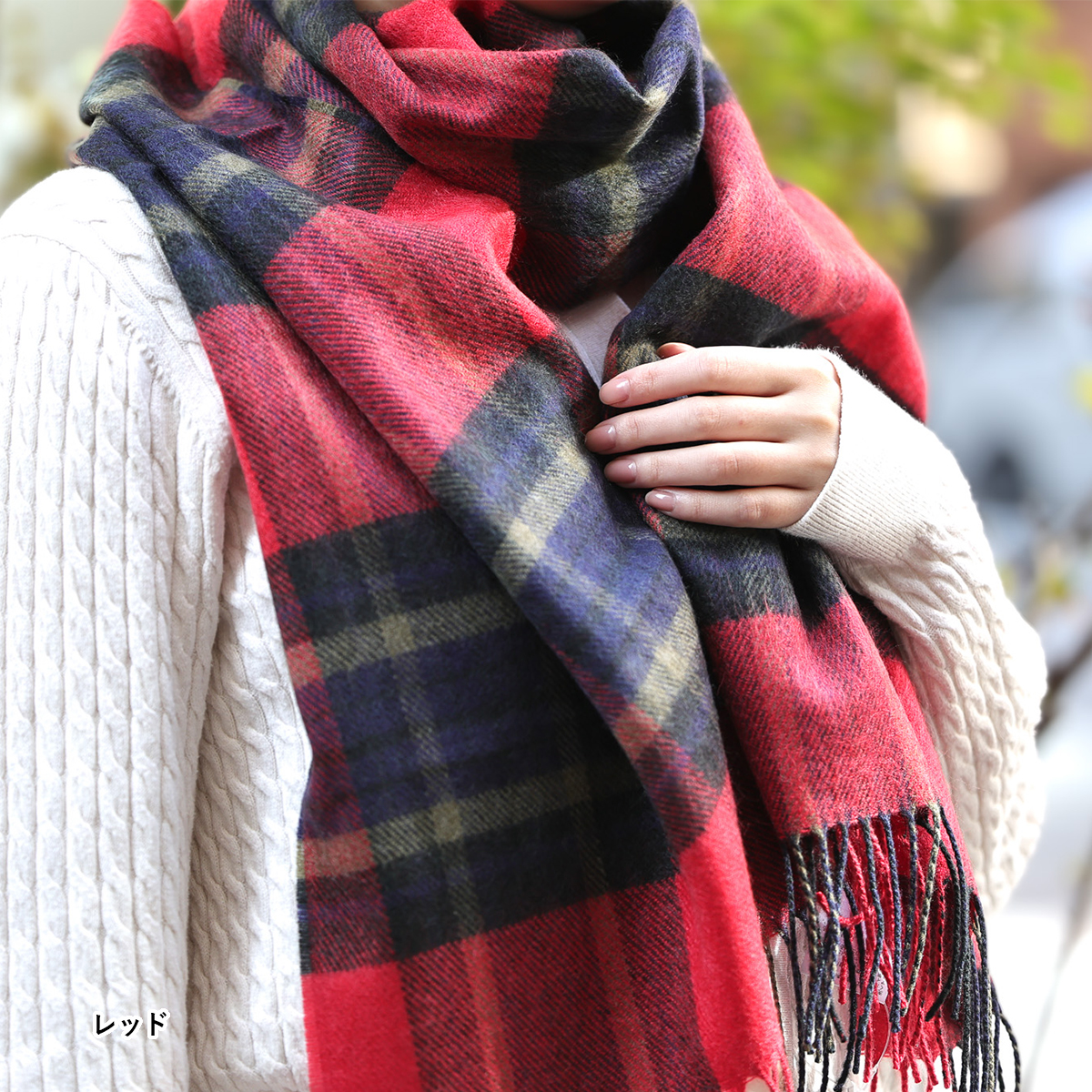 チェックマフラー 静電気防止糸使用 大判 レディース ストール