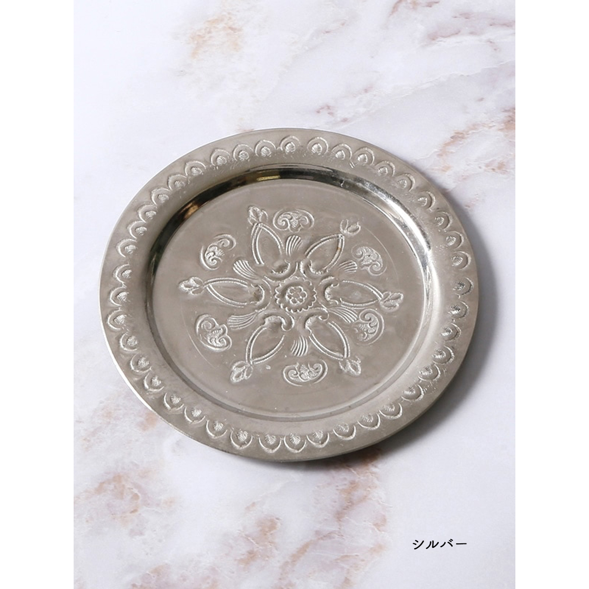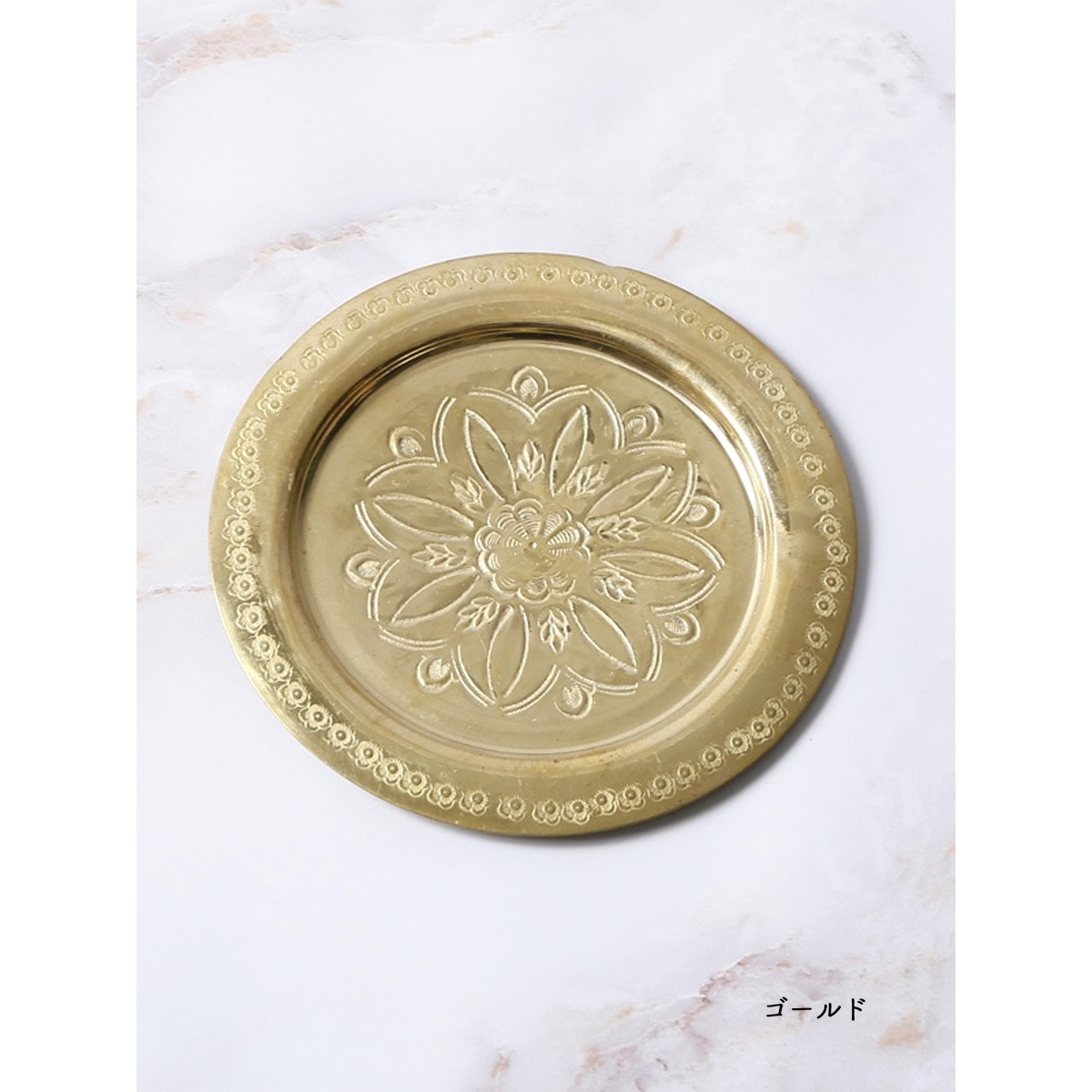 オリエンタルな刻印の真鍮製コースターです。柄は1枚1枚異なるアソートとなります。商品画像は一例です。
