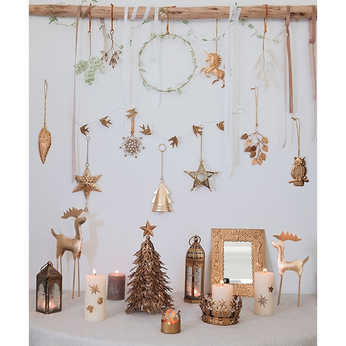 クリスマスにもぴったりなオーナメントやオブジェなどの新作を多数取り揃えておりました。一つでも、複数合わせて飾ってもマットなゴールドの色味なので、大人っぽい雰囲気でお使いいただけます。新作のキャンドルピンは裏側が画鋲のようになっておりキャンドルの表面に刺して装飾としてお使いいただけます。ヨーロッパのインテリアのようなアンティーク調の雰囲気をお楽しみください。