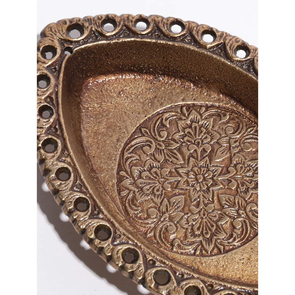 繊細な型押し模様が美しいインドの真鍮トレー。