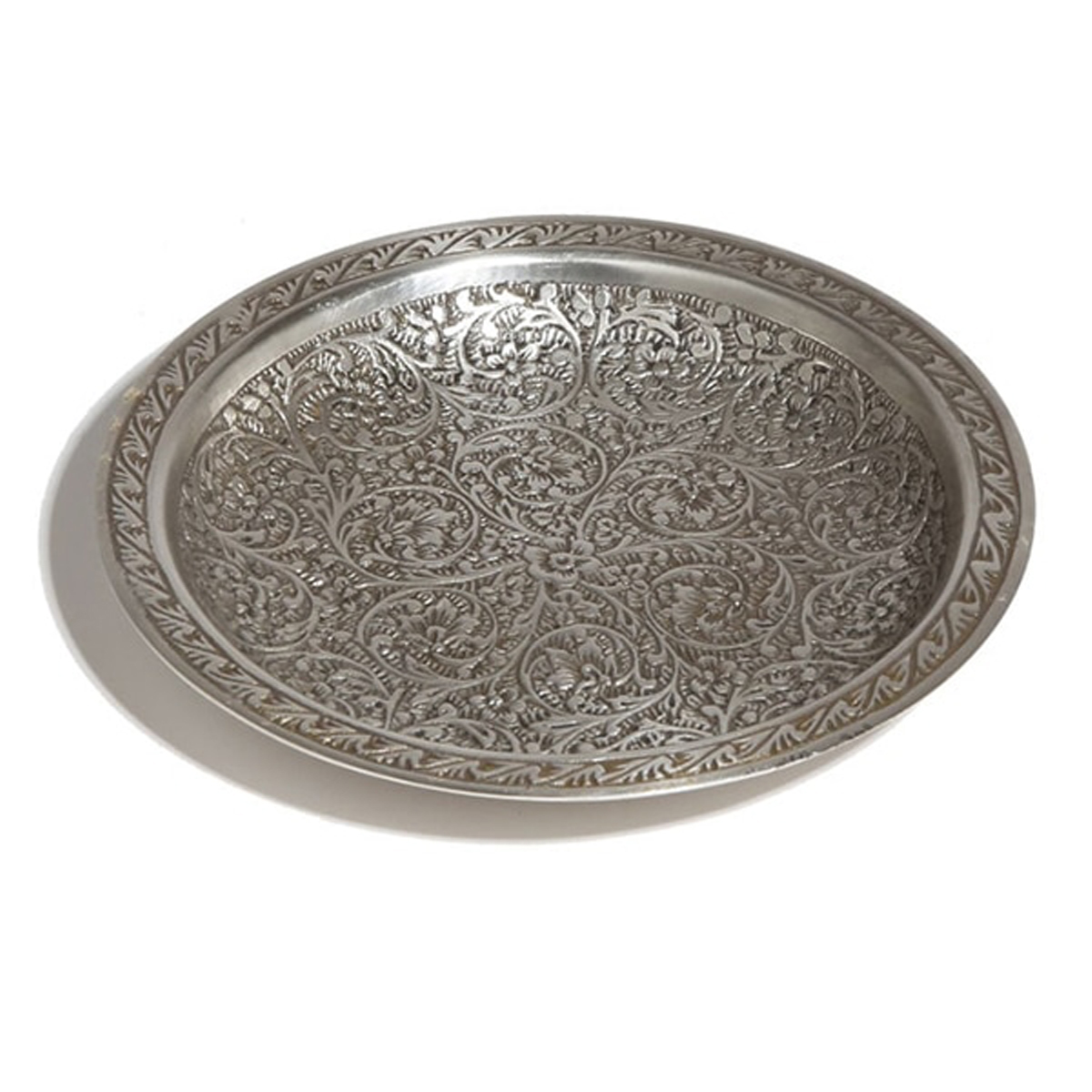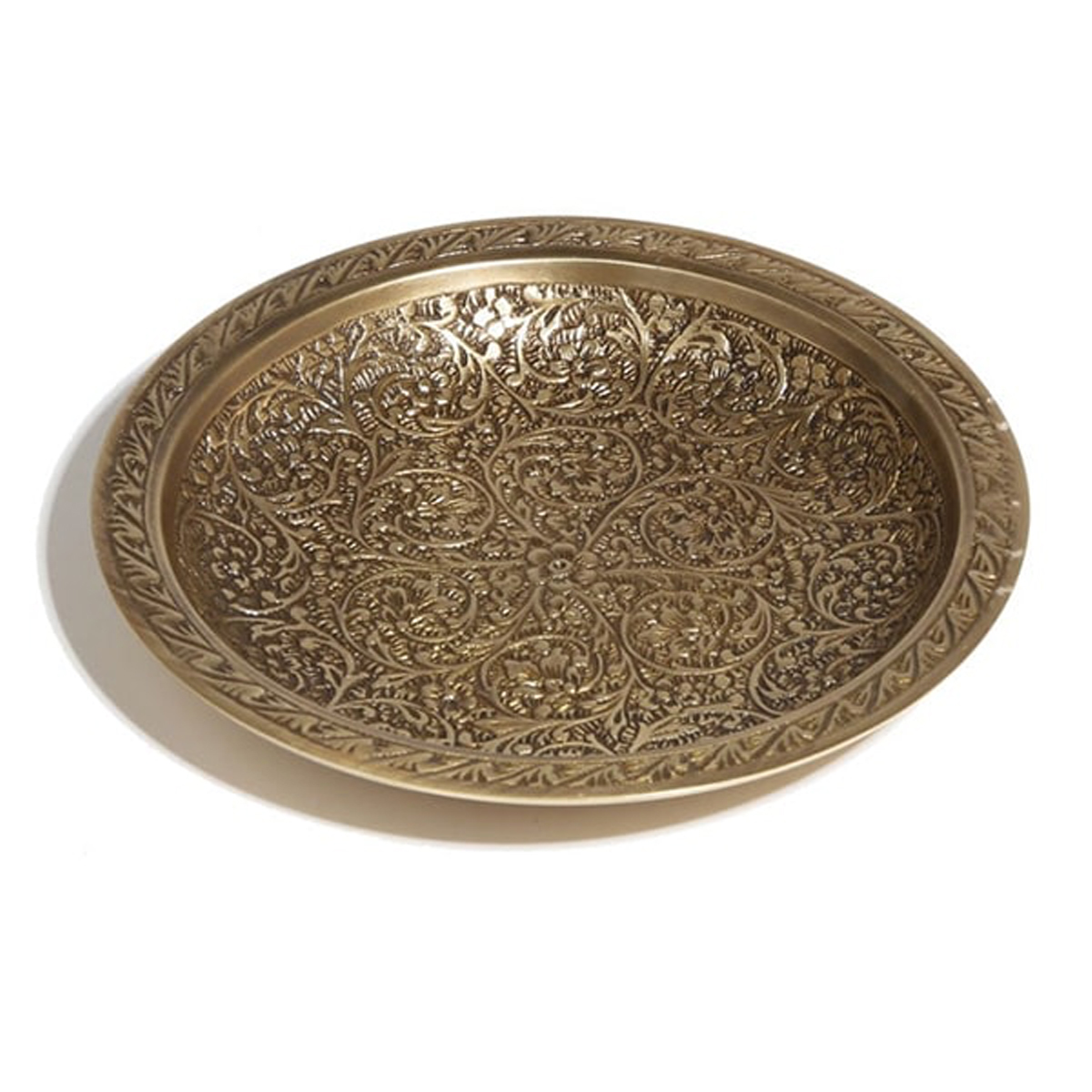 繊細な型押し模様が美しいインドの真鍮トレー。