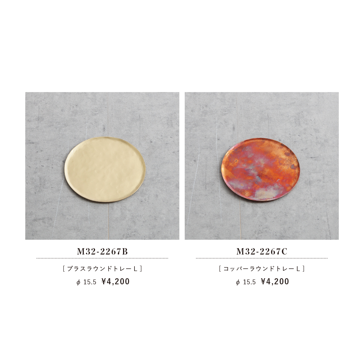 | 素材 | ブラスフリーシェイプトレー:真鍮 コッパーフリーシェイプトレー:銅 ブラスラウンドトレー:真鍮 コッパーラウンドトレー:銅 ブラスレクタングルトレー:真鍮 コッパーレクタングルトレー:銅 ブラスラウンドトレー:真鍮 コッパーラウンドトレー:銅 |