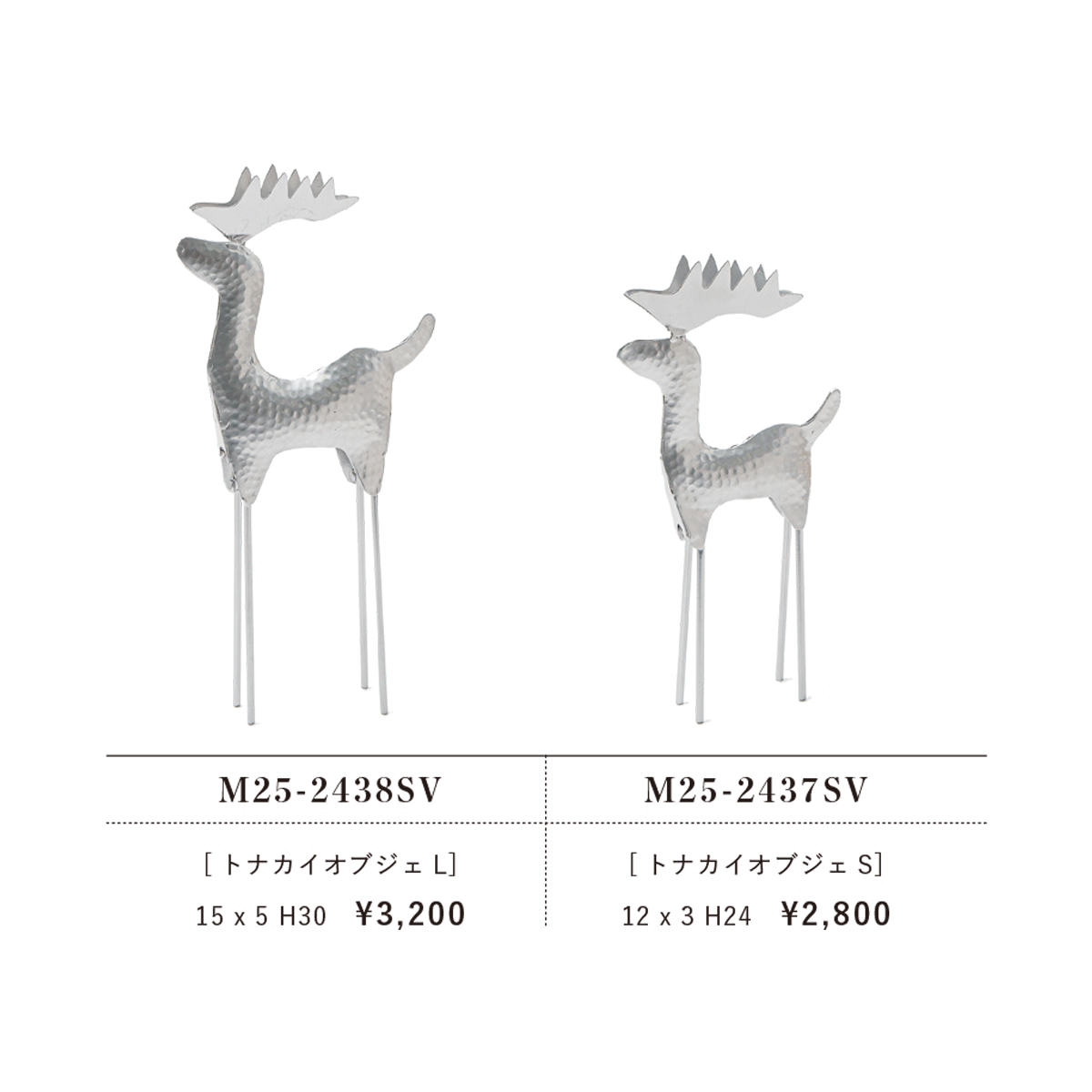 | サイズ | トナカイオブジェL シルバー:W15 D5 H30 トナカイオブジェS シルバー:W12 D3 H24 |