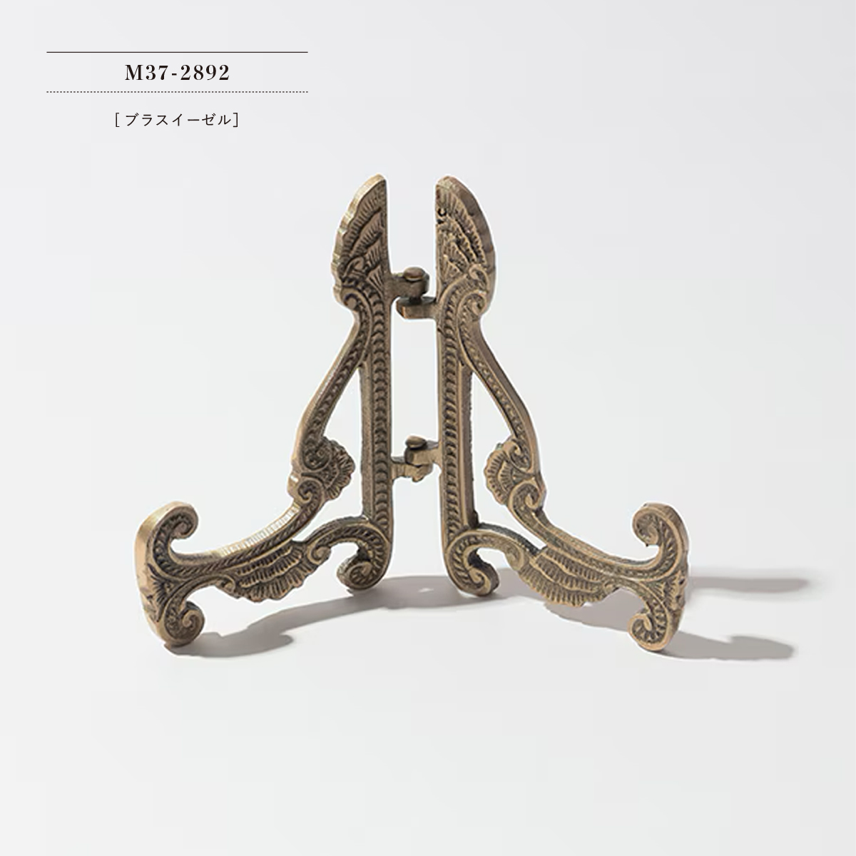 インド製の真鍮素材を使用したブラスイーゼルは、ナチュラルかつ温かみのあるデザインで、小さなアート作品やポストカード、フォトカードをディスプレイするのにぴったりです。シンプルなフォルムとゴールドの質感が、どんな空間にも調和しながら上品なアクセントを添えてくれます。大きさは幅14cm、高さ10cm、厚さ0.5cmとコンパクトで、テーブルや棚に置いても場所を取らず、ショップのディスプレイやご家庭での演出にも最適です。