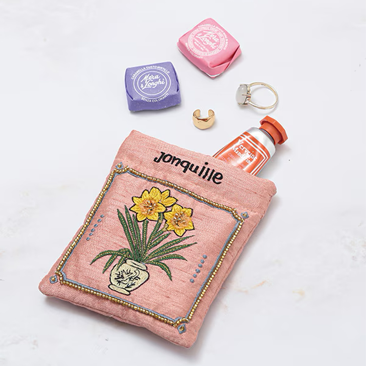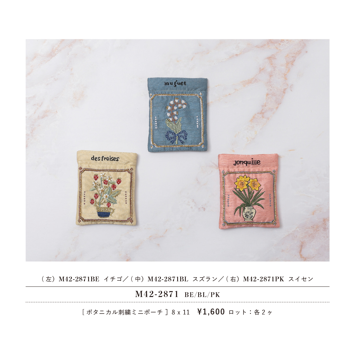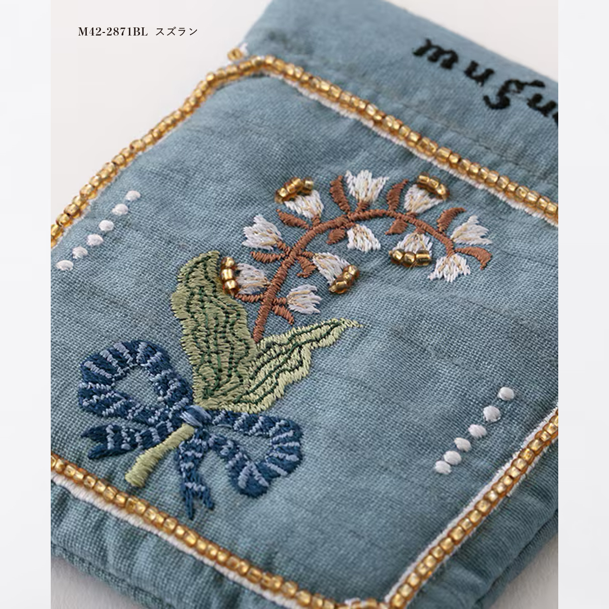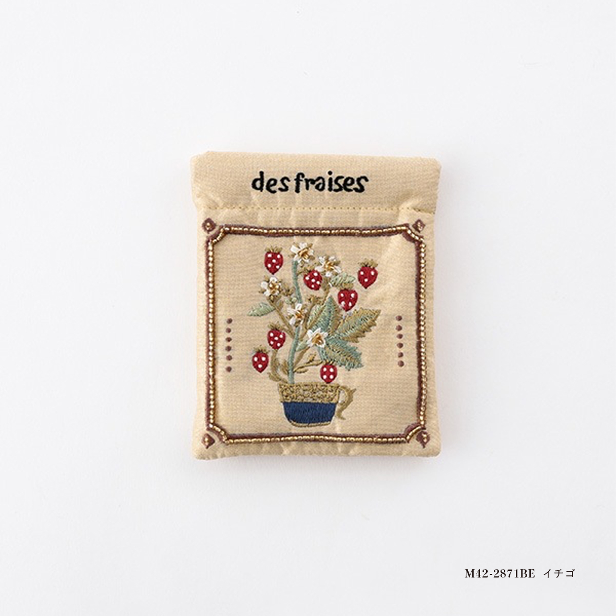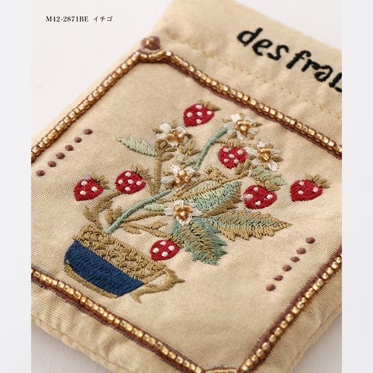 【東京かんかん】ボタニカル刺繍 ミニポーチ イチゴ スズラン スイセン 小物入れ