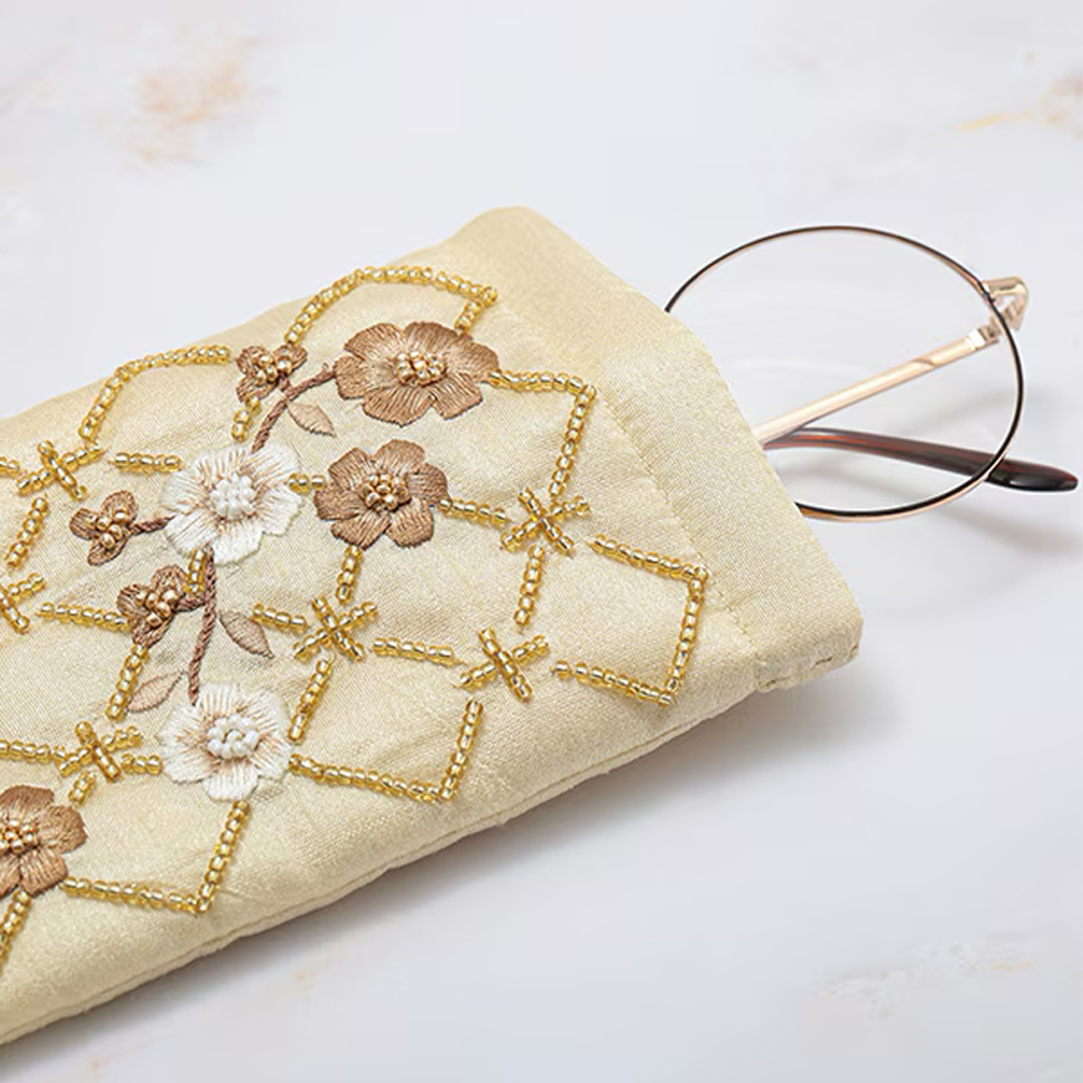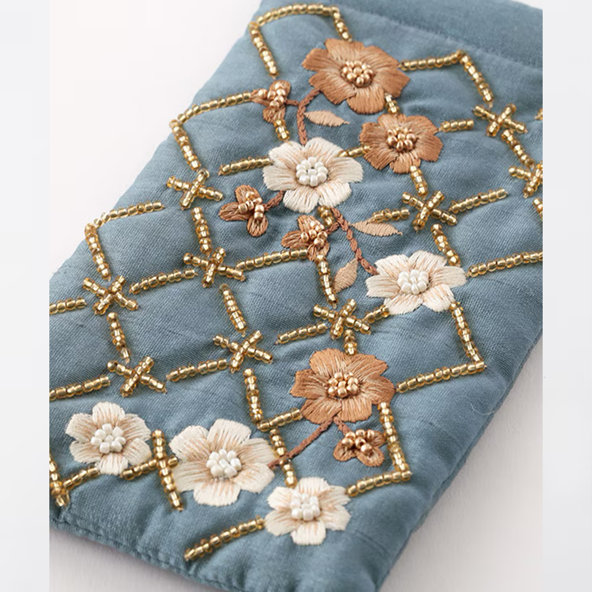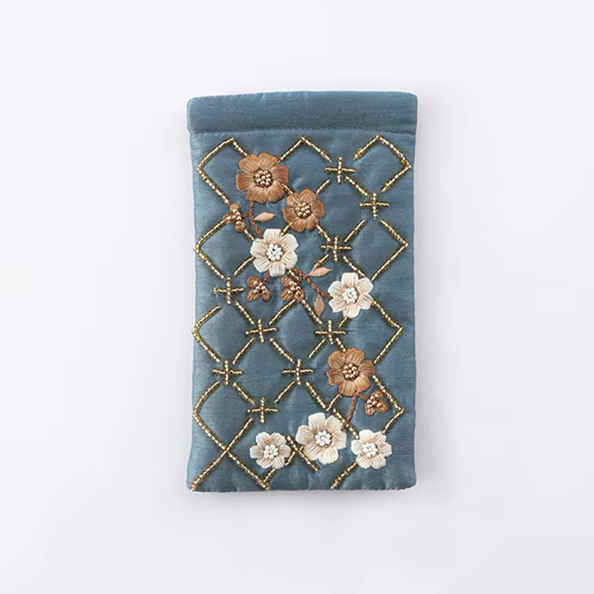 【東京かんかん】フラワー格子 刺繍メガネケース ファッション小物