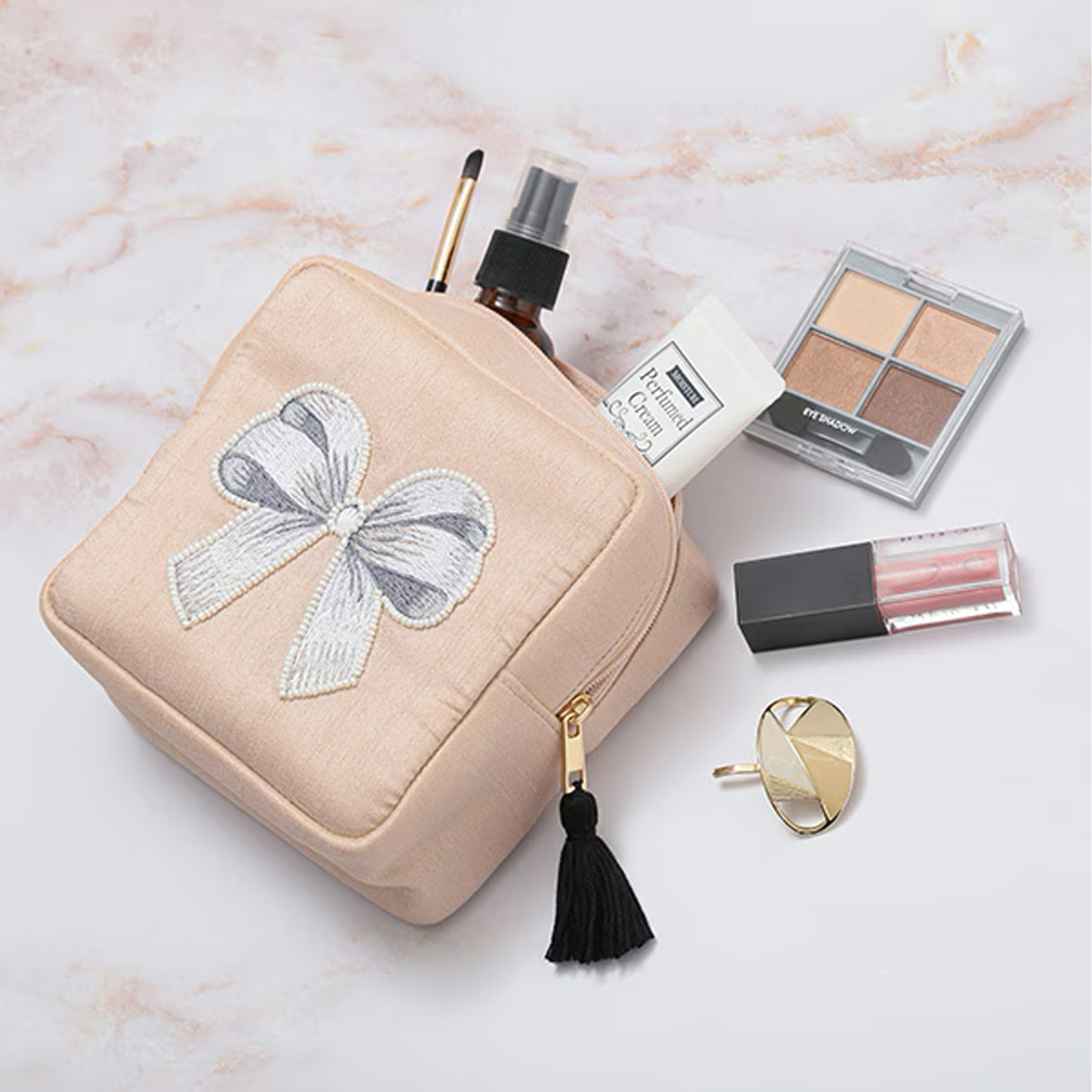 【東京かんかん】リボン刺繍コスメポーチ 小物入れ