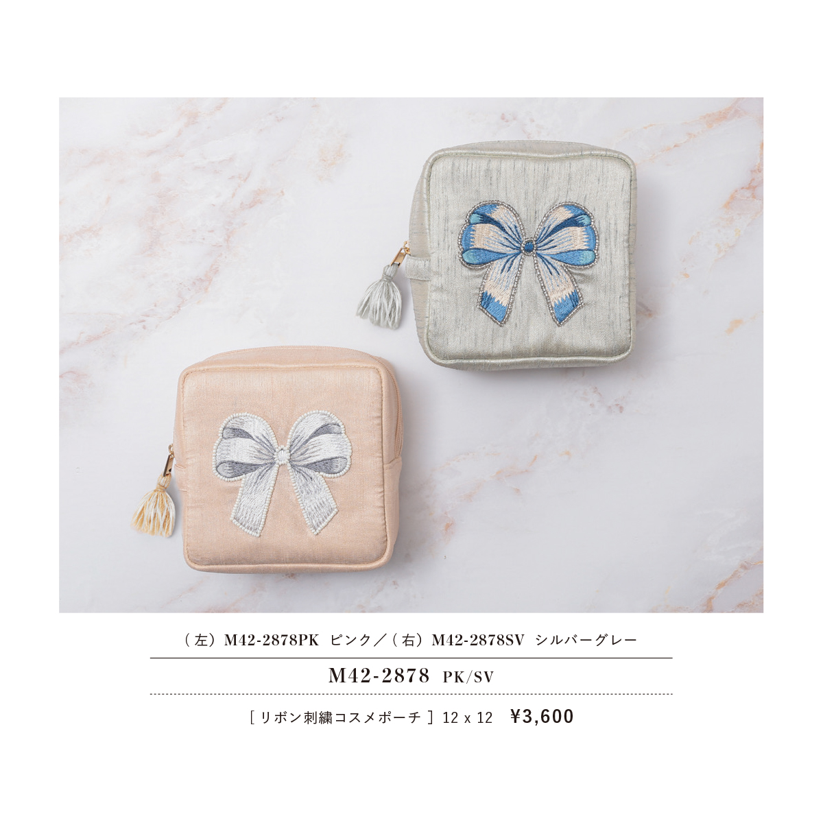 新作のリボンシリーズは優しい色合いで大きな刺繍が目を惹く仕上がりです。