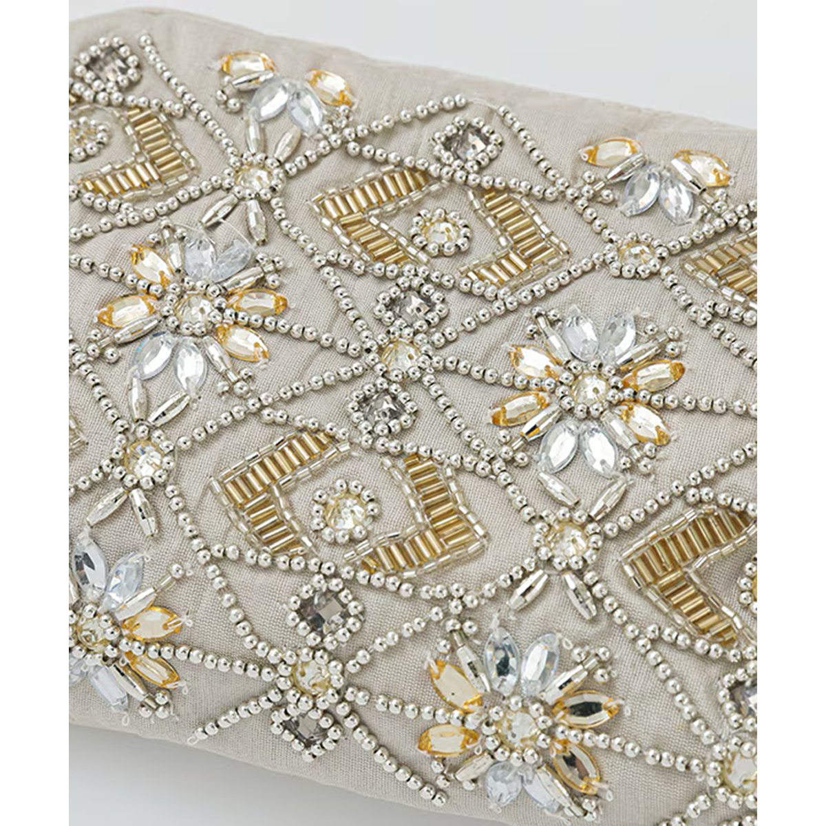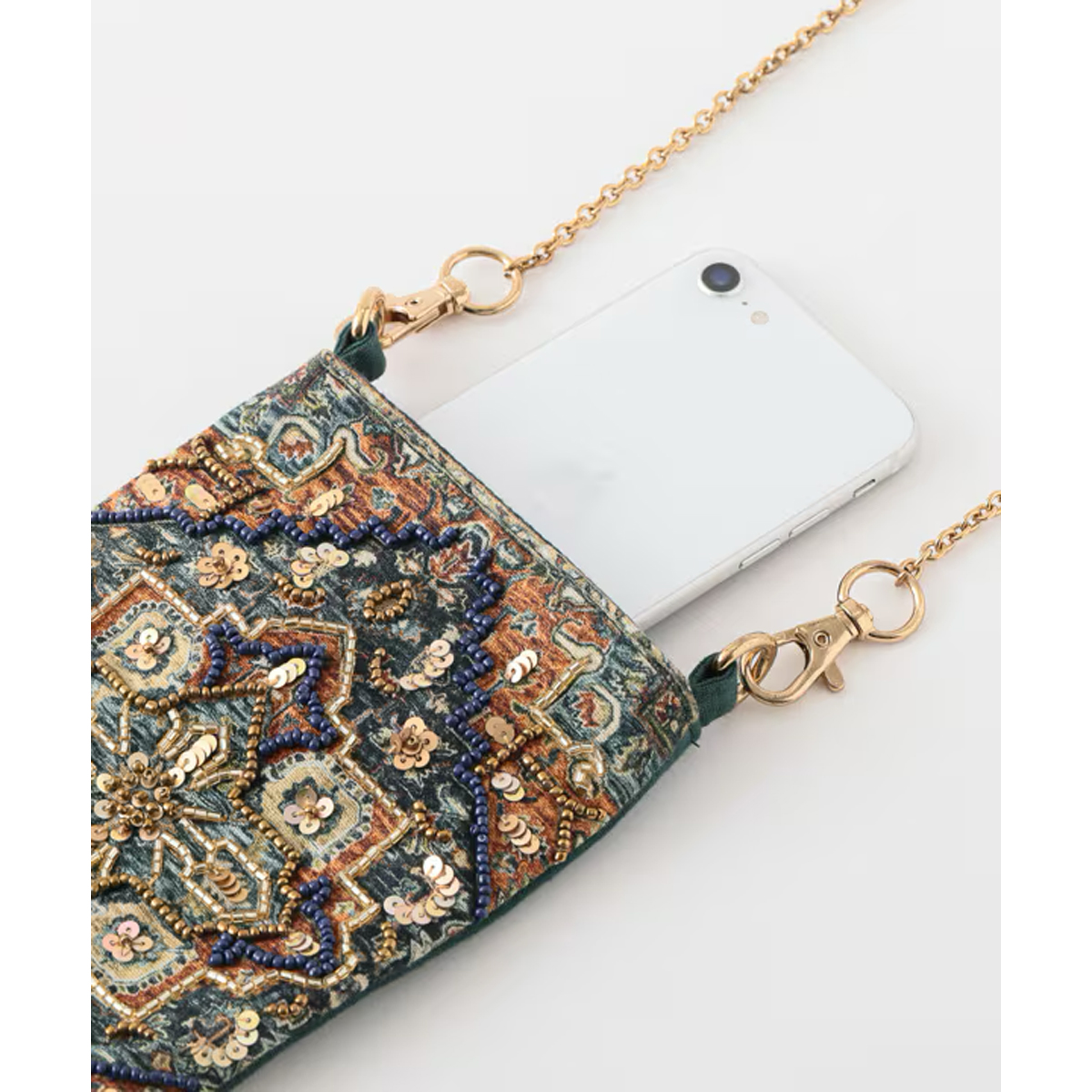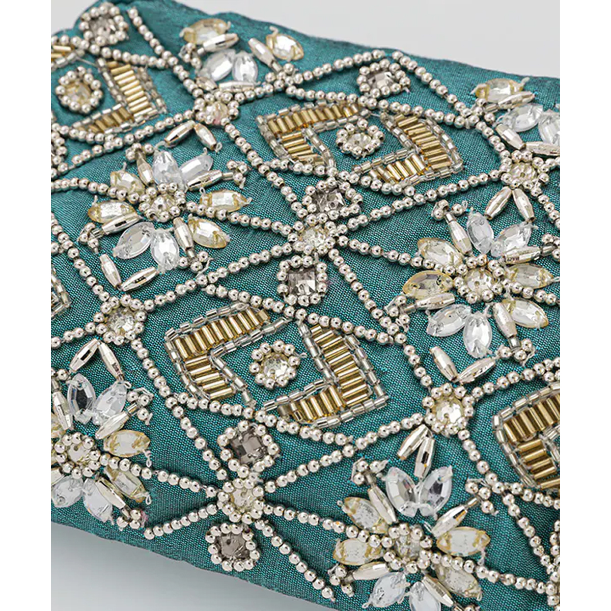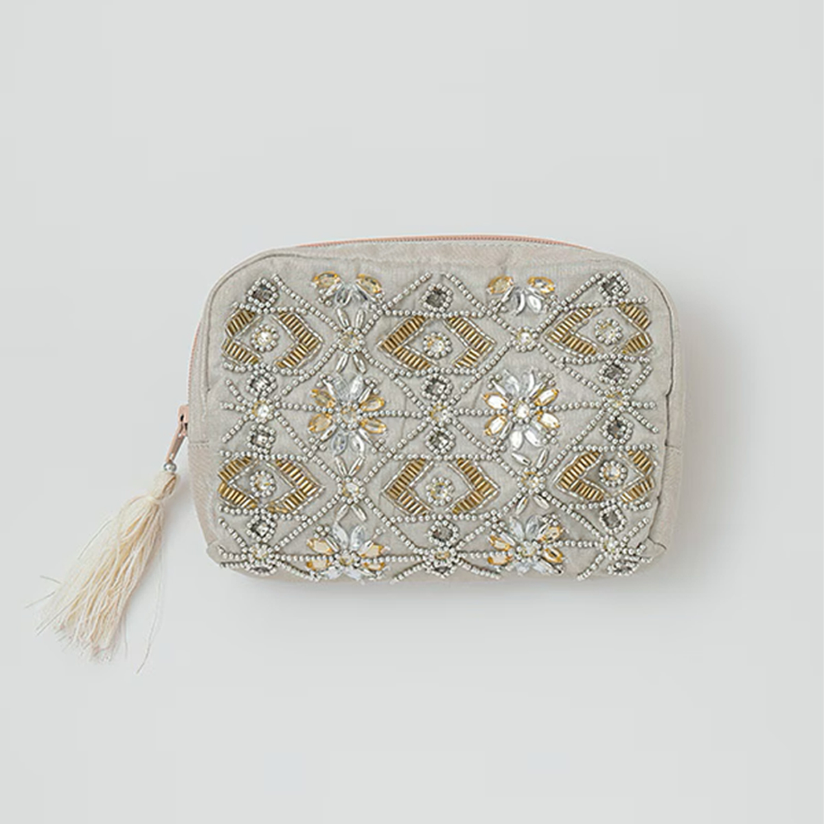 色鮮やかなビーズ刺繍やミラー刺繍が施された、華やかさあふれるポーチです。