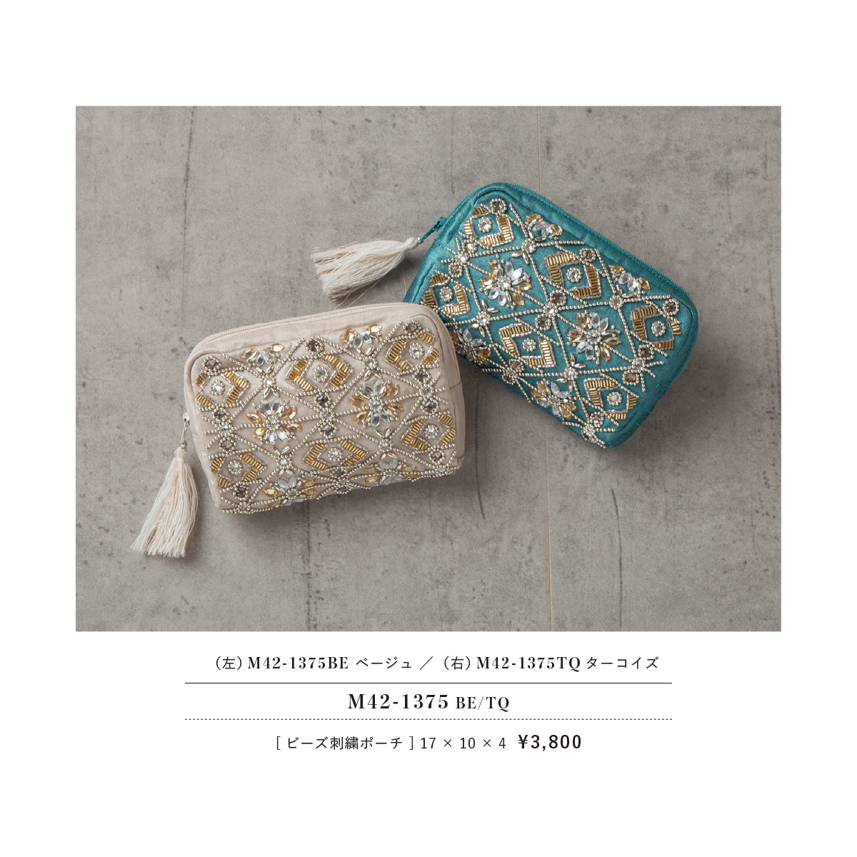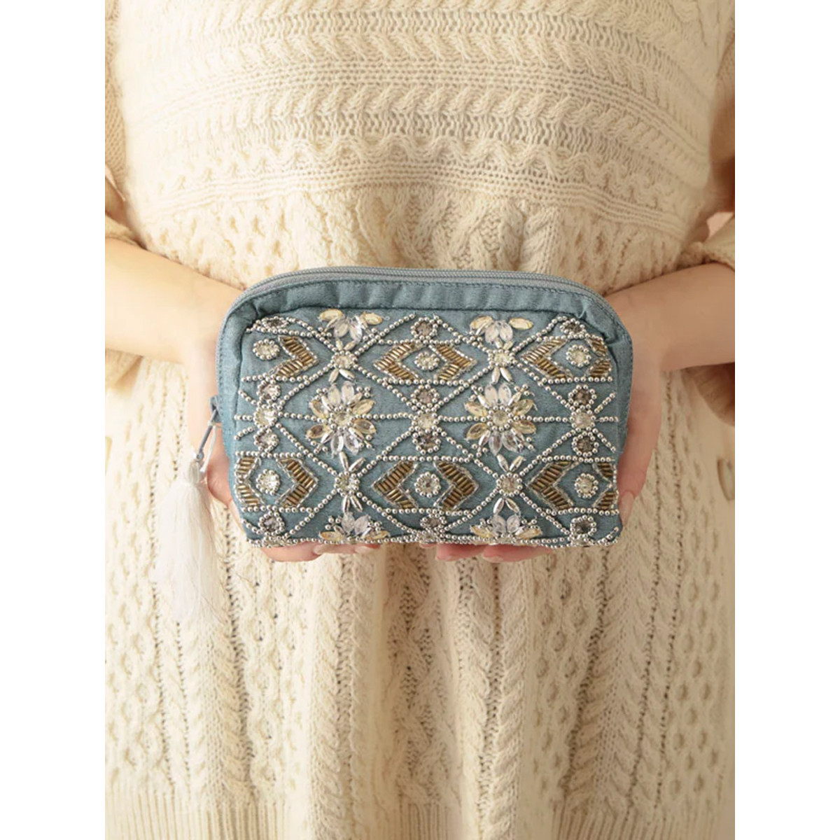 【東京かんかん】ビーズ刺繍ポーチ 小物入れ 化粧ポーチ
