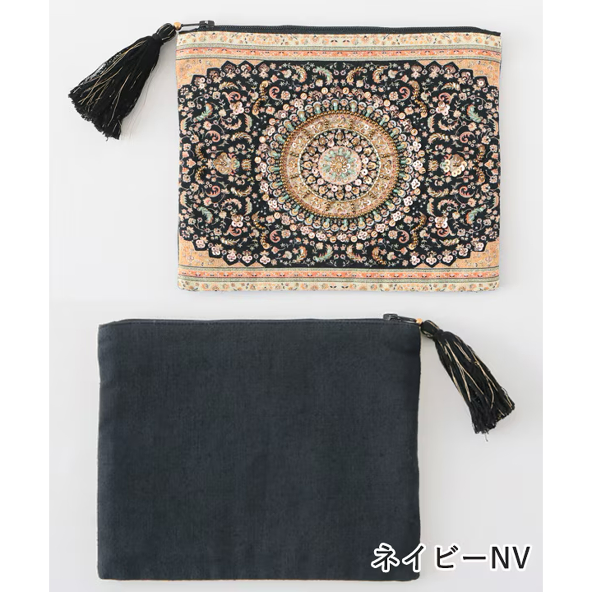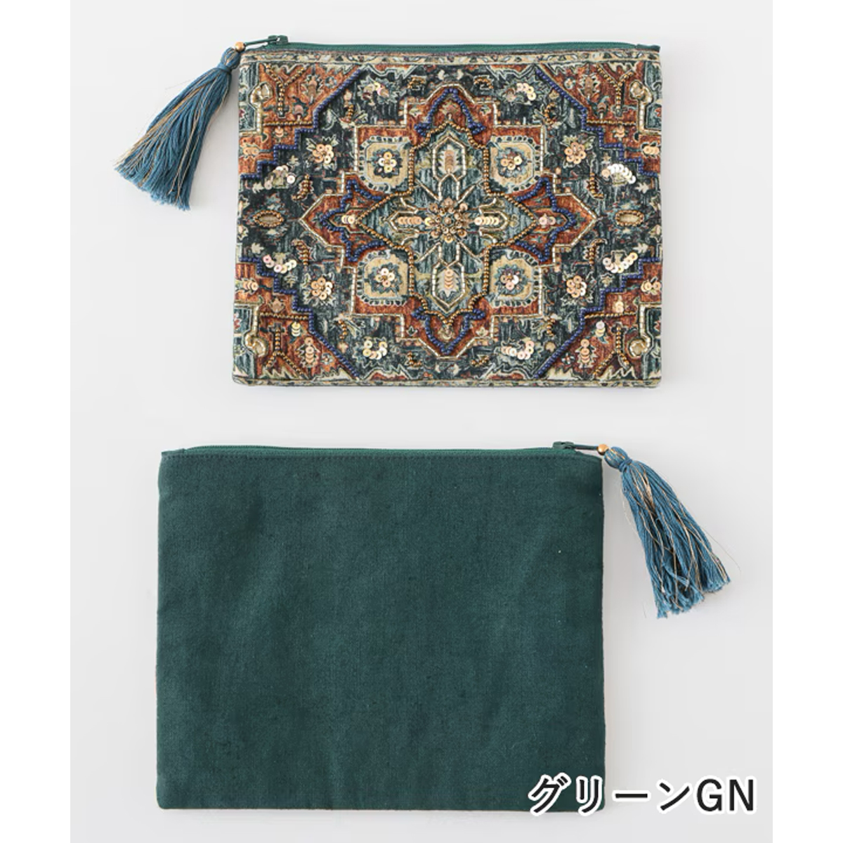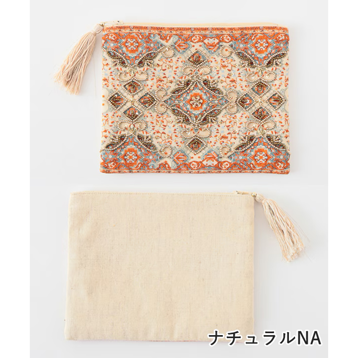 【東京かんかん】プリント&ビーズ刺繍 ポーチL 小物入れ 化粧ポーチ
