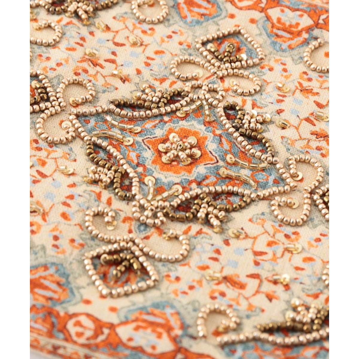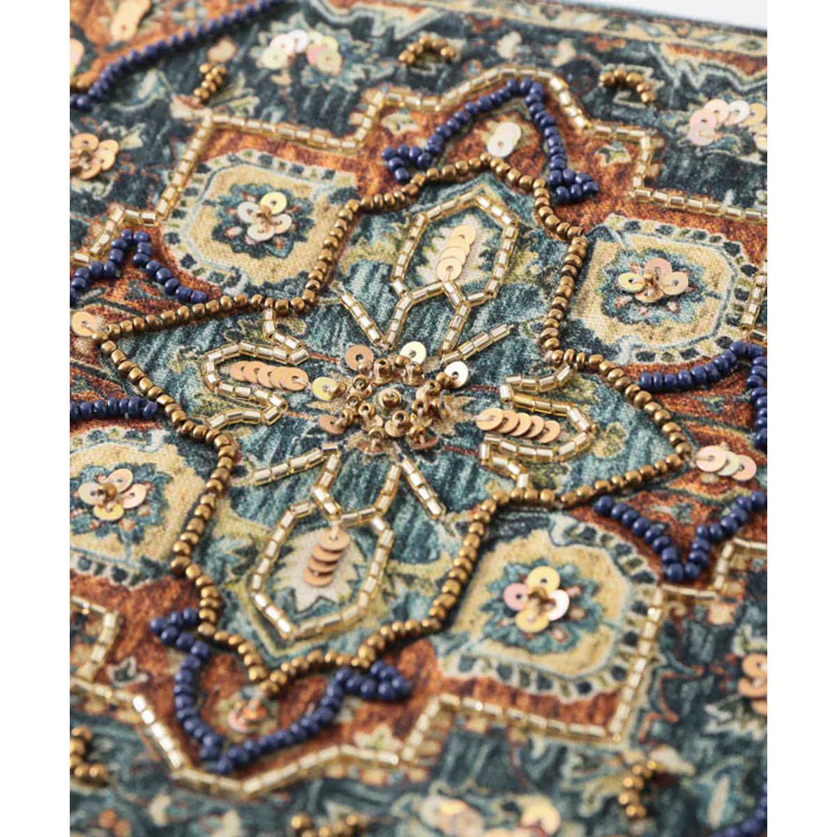 人気のビーズ刺繍の新作は、インドのヴィンテージラグの柄をプリントした上にビーズ刺繍をあしらったシリーズです。
