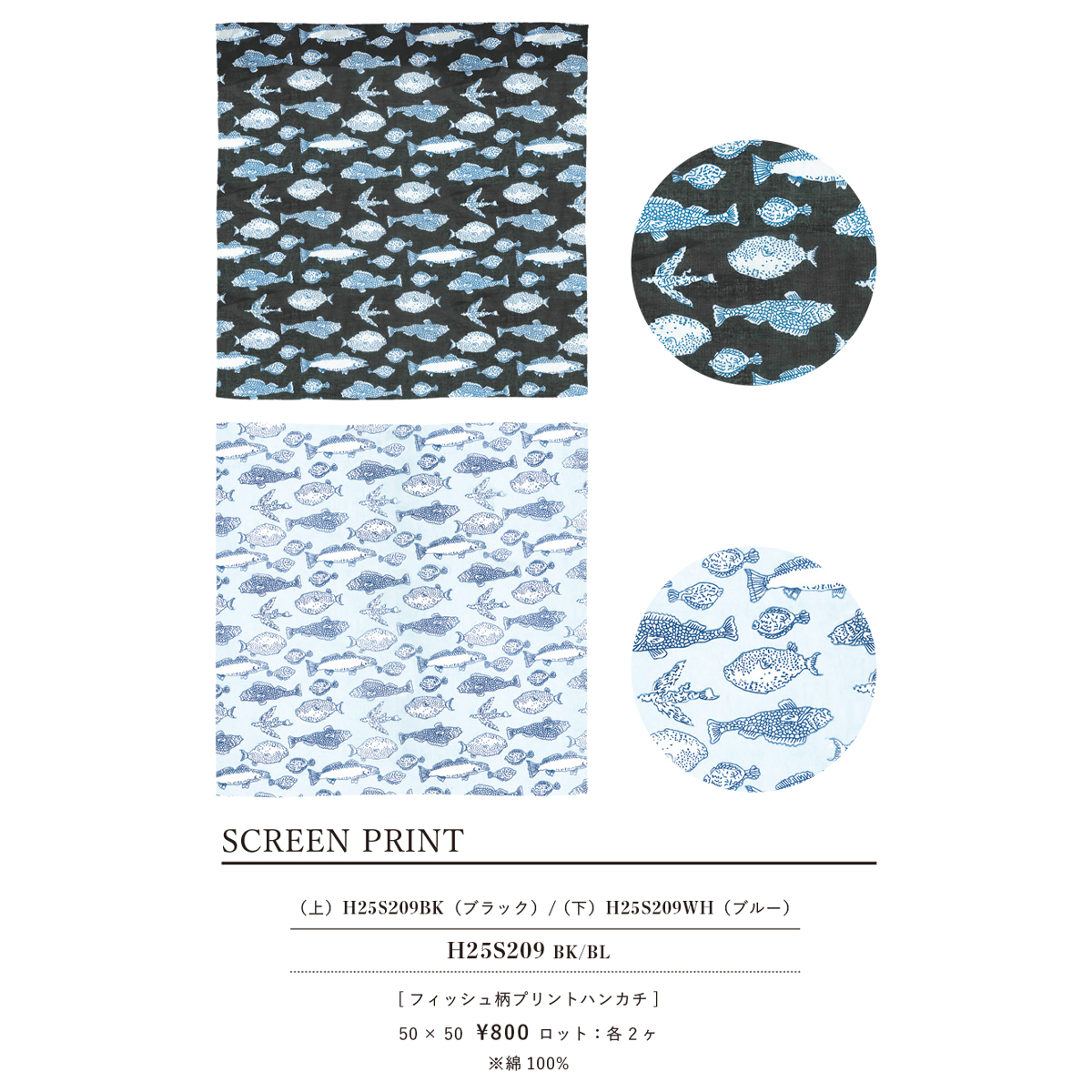 【東京かんかん】フィッシュ柄プリントハンカチ 魚柄 綿100%