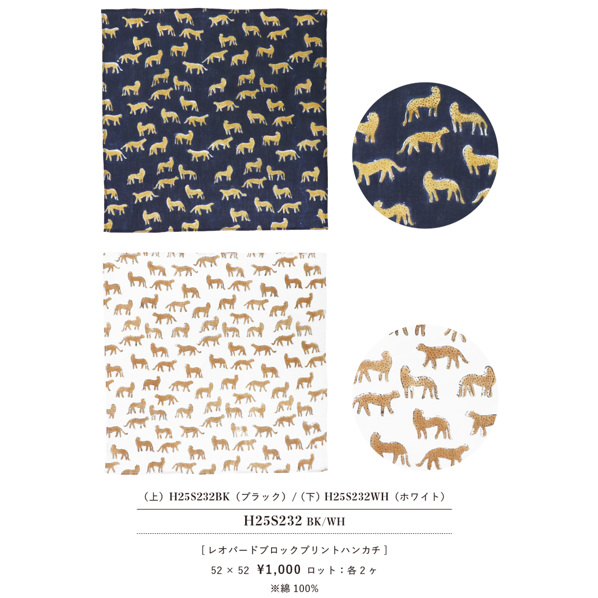 【東京かんかん】レオパードブロックプリントハンカチ 綿100%