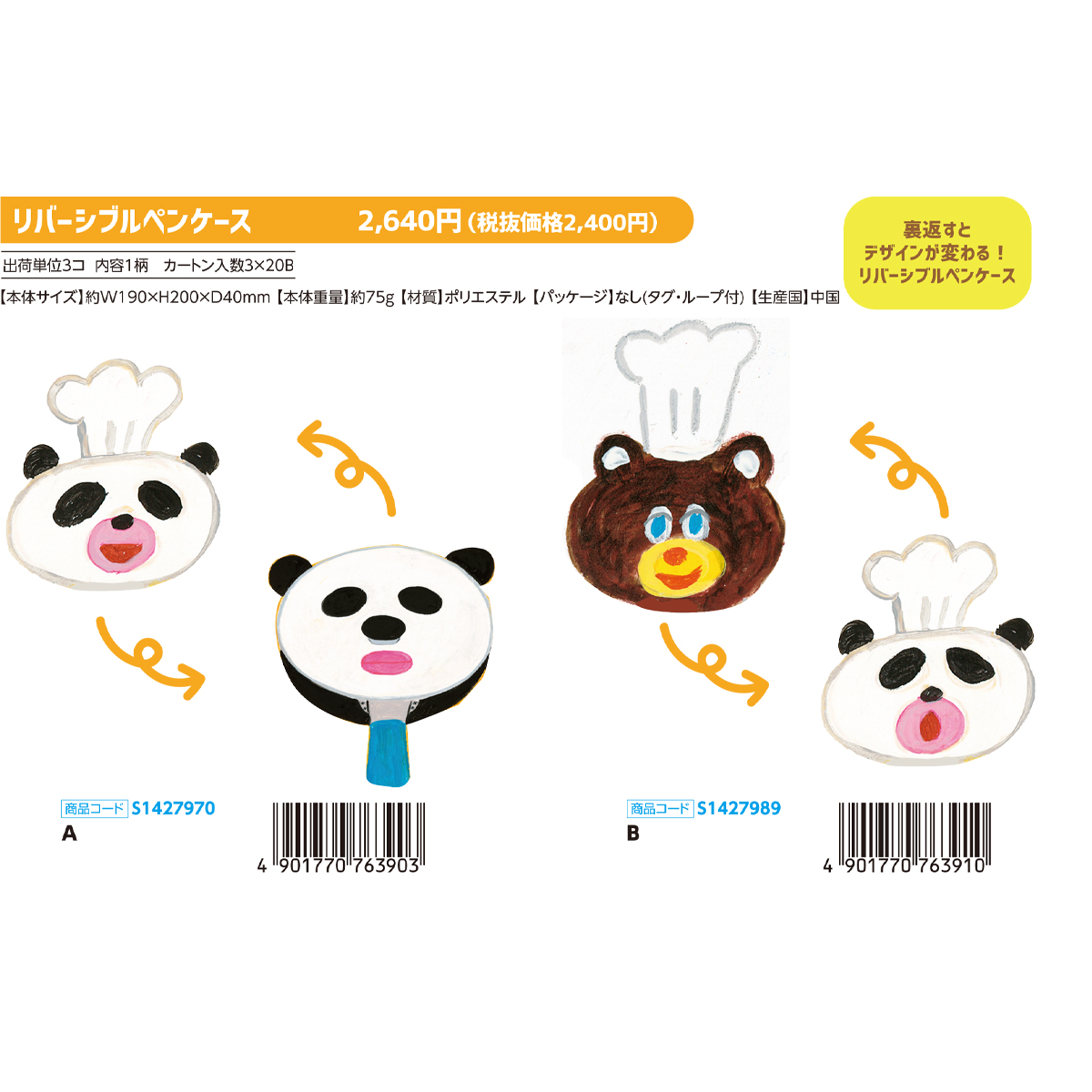 リバーシブルペンケース パンどろぼう パンダのおさじとフライパンダ