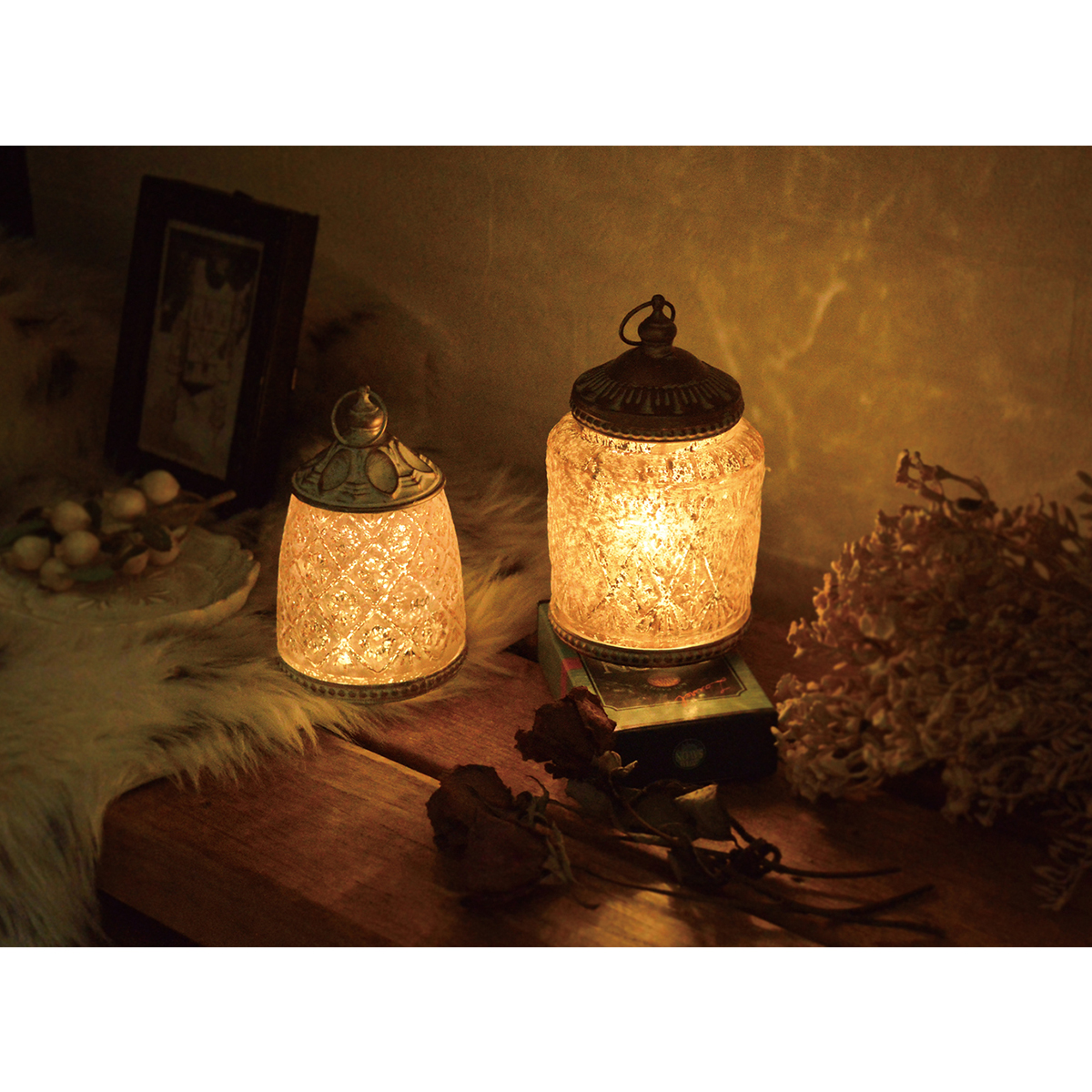 ドレッシーな飾りを施したLEDランタン。リラックスタイムを優雅に演出します