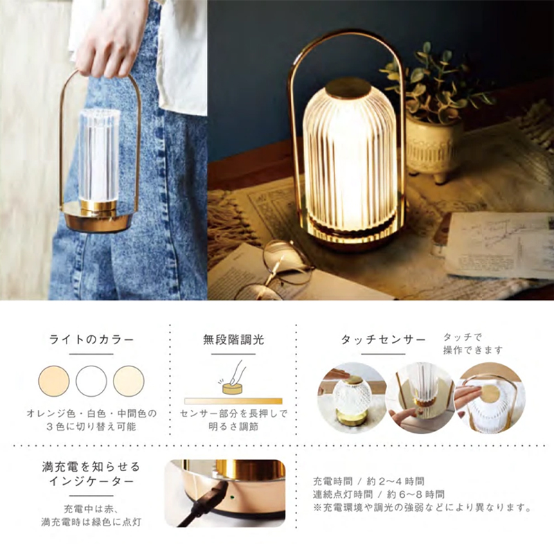 タッチセンサーでON/OFF、ライトのカラーを変更できます。