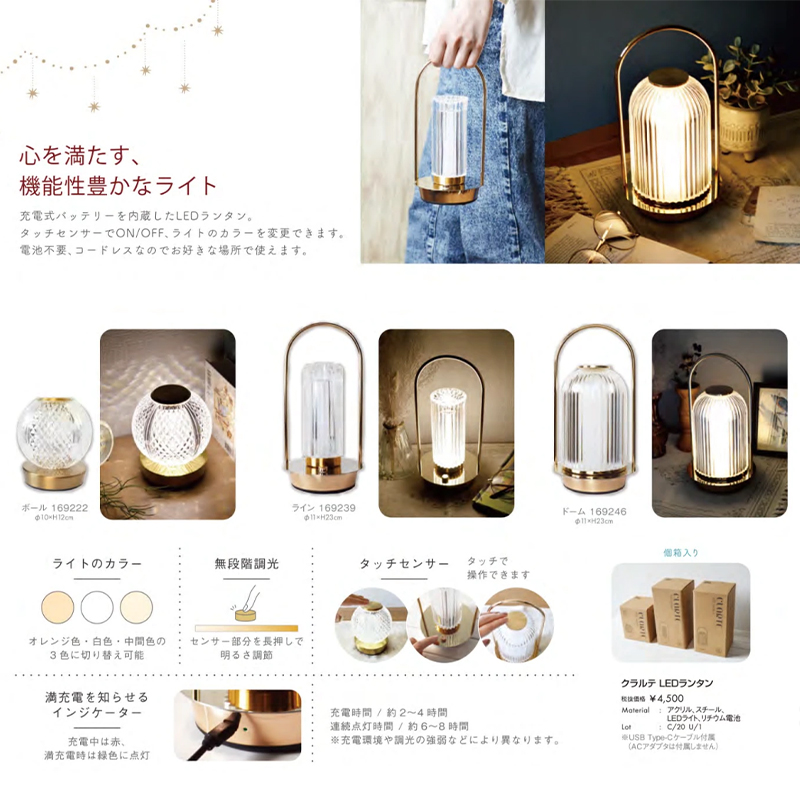 | 素材 | アクリル、スチール、LEDライト、リチウム電池 |