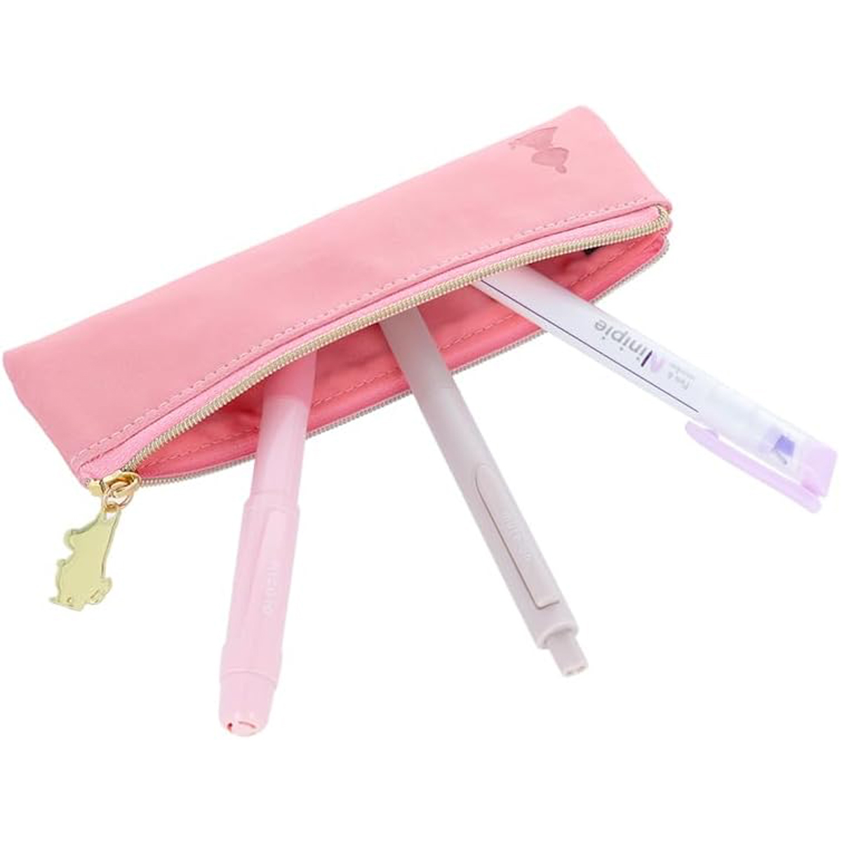 スリムタイプのペンケースでファスナー部分にメタルチャーム付き