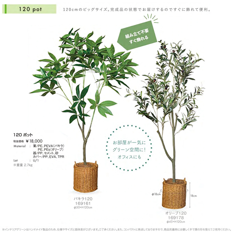 | サイズ | パキラ120:Φ50×H120cm オリーブ120:Φ45×H120cm |