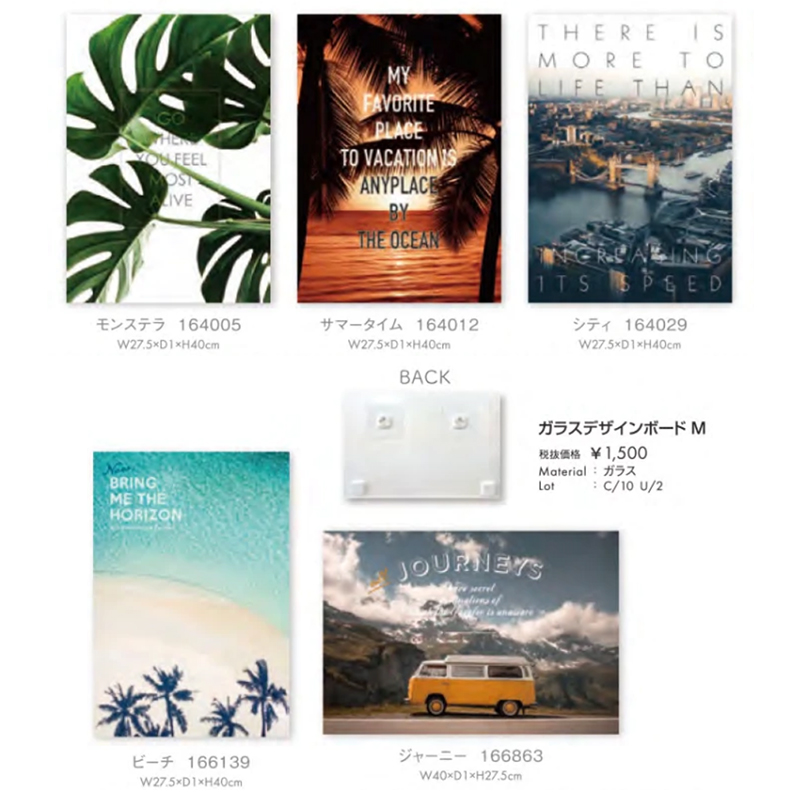 気軽に飾れる強化ガラス製のアートボード。美しい風景と気分を盛り上げてくれるフレーズの組み合わせが人気
