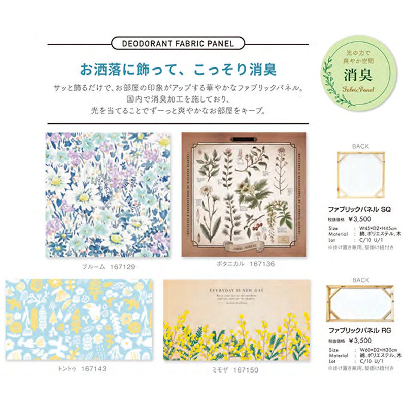 簡単に飾れて、お部屋の印象アップ。消臭加工を施しており、光をあてる事で爽やかなお部屋をキープします
