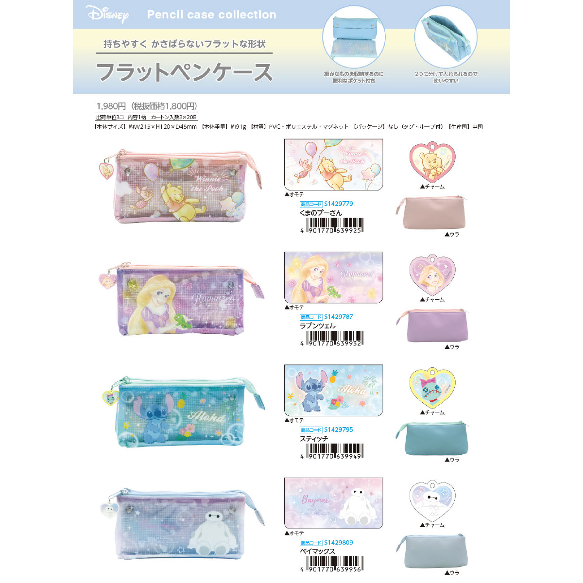 真ん中のスナップを外して広げられる、フラットタイプのペンケースです。