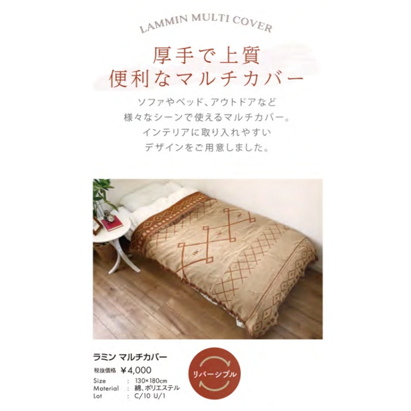ソファやベッド、アウトドアなど様々なシーンで使えるマルチカバー。