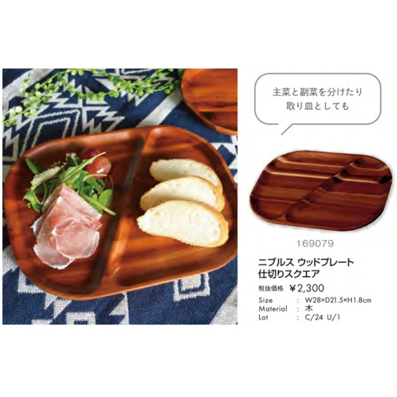 ウッドプレート 仕切りスクエア:主菜と副菜を分けたり、取り皿としても