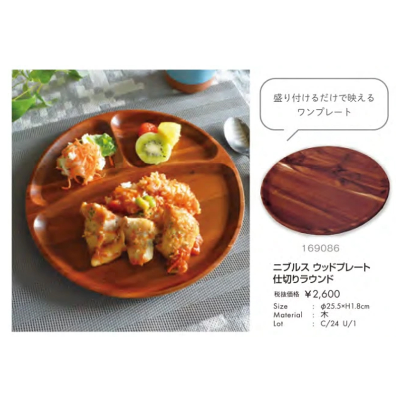 ウッドプレート 仕切りラウンド:盛り付けるだけで映えるワンプレート