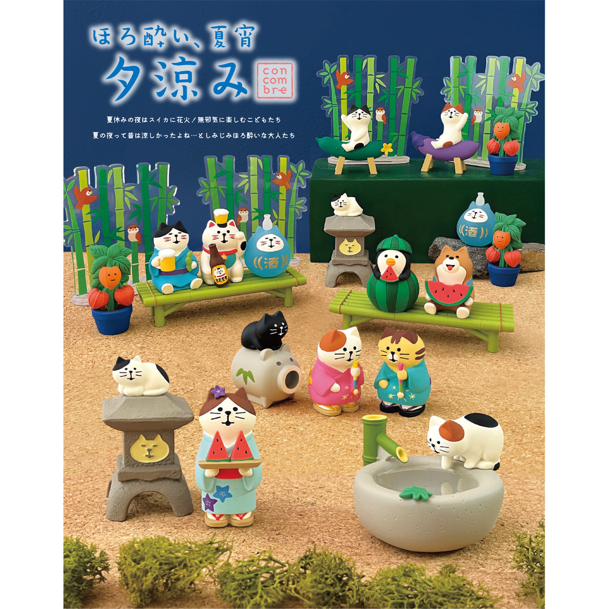 《予約:12/23(火)〆切》【concombre コンコンブル】ほろ酔い、夏宵 夕涼み マスコット ミニチュア オブジェ 猫 ねこ 夏