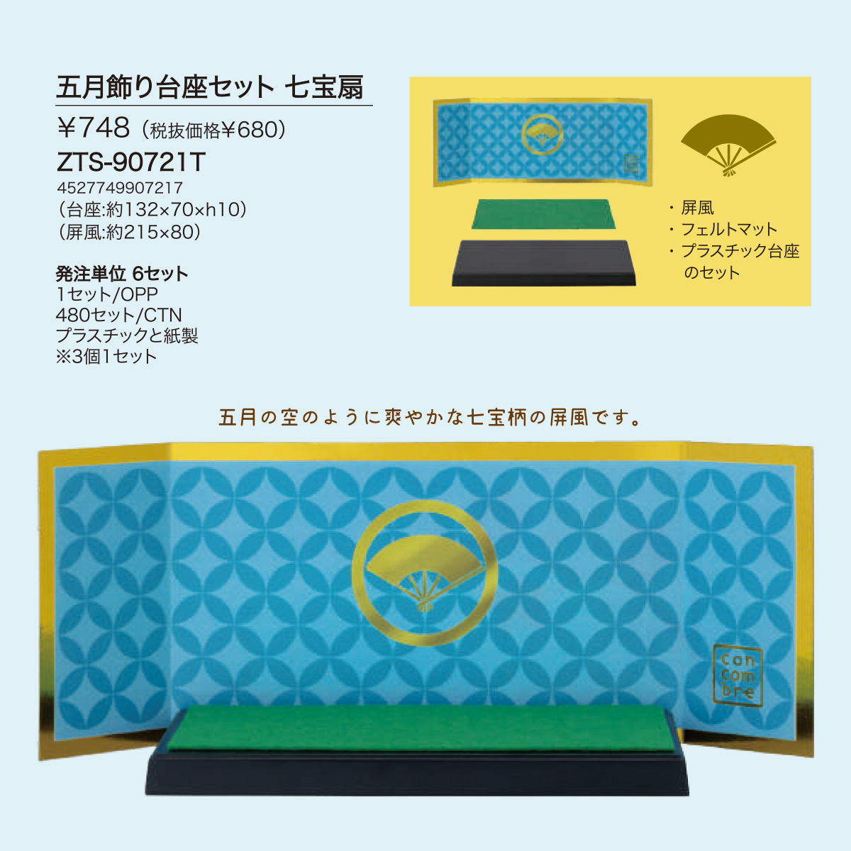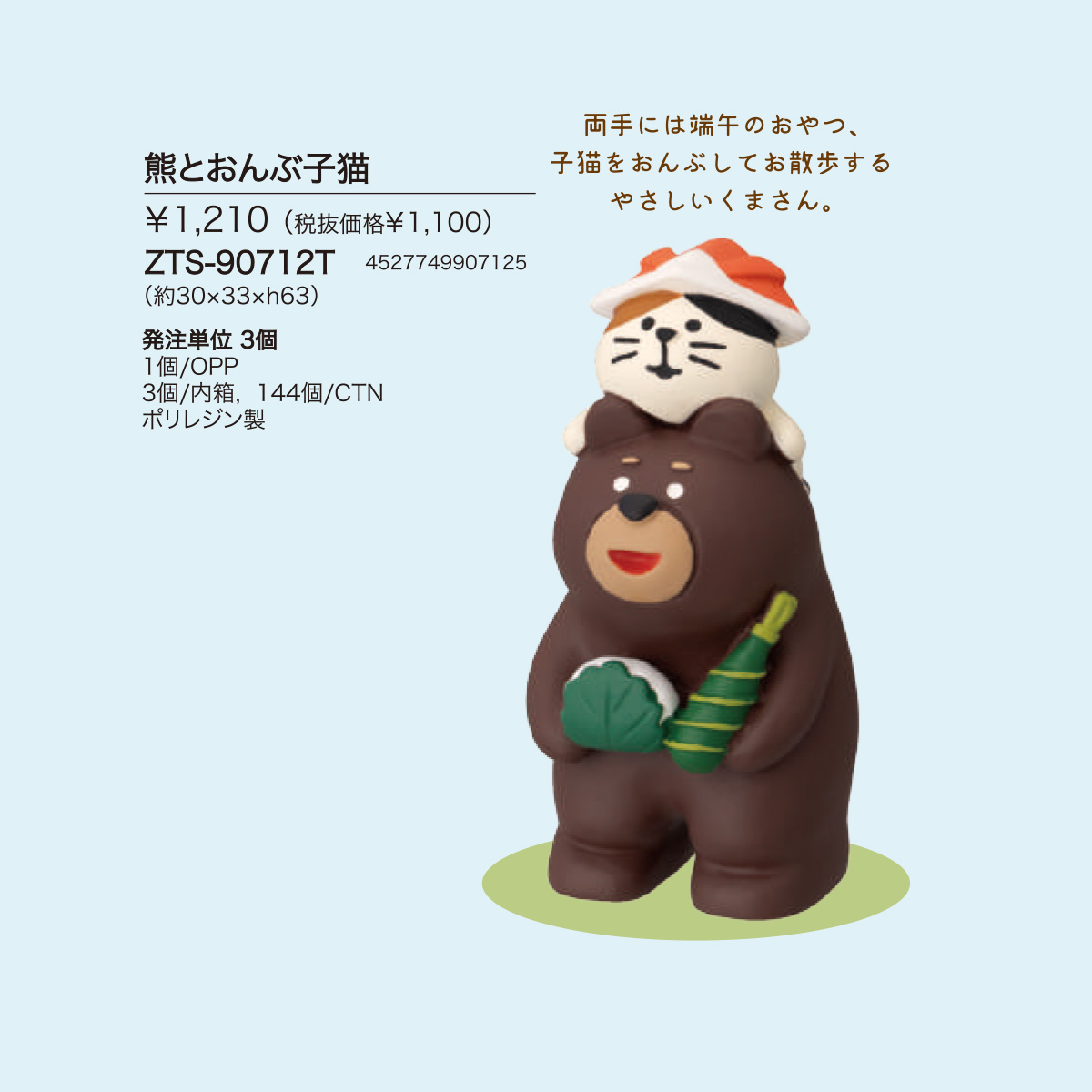 | サイズ | 【DC:ZTS-90711T 熊かつぎ金太郎猫】約45×25×h70、本体重量:52g 【DC:ZTS-90712T 熊とおんぶ子猫】約30×33×h63、本体重量:50g 【DC:ZTS-90713T 鯉運びにゃんこ】約55×24×h30、本体重量:20g 【DC:ZTS-90714T 鯉運びわんこ】約50×24×h35、本体重量:22g 【DC:ZTS-90715T 花菖蒲と鯉 赤】約φ24×h45(旗含まず)、本体重量:11g 【DC:ZTS-90716T 花菖蒲と鯉 青】約φ24×h45(旗含まず)、本体重量:11g 【DC:ZTS-90719T 柏餅インコ】約27×30×h43、本体重量:23g 【DC:ZTS-90720T 端午のかっぱ】約32×28×h42、本体重量:21g 【DC:ZTS-90721T 五月飾り台座セット 七宝扇】台座:約132×70×h10、屏風:215×80、本体重量:27g |