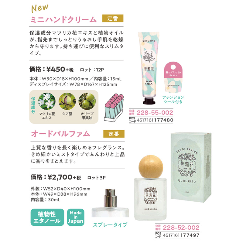 【YURURITO】ゆるりと 茉莉花 オードパルファム・ハンドクリーム 日本製