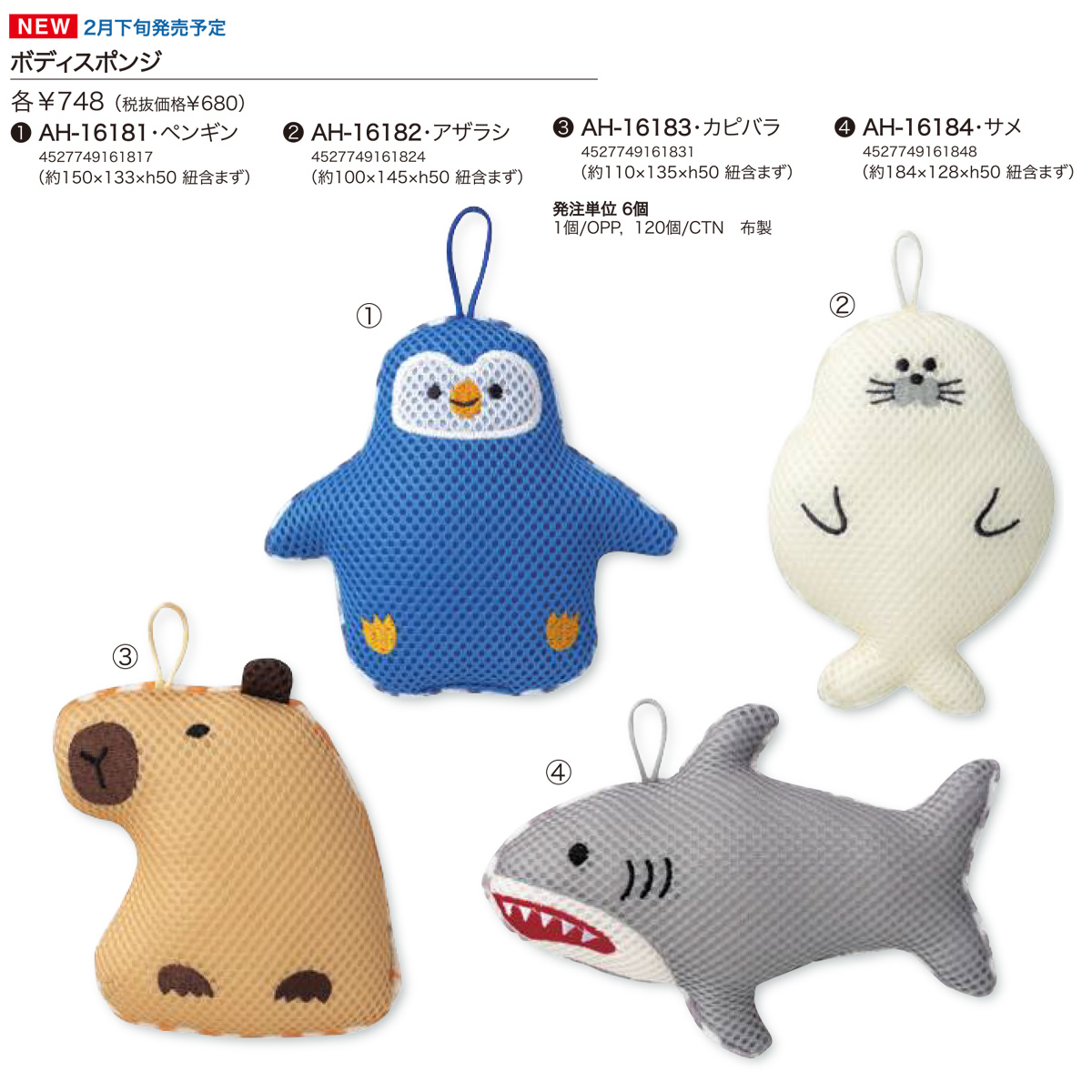 【予約】ボディスポンジ ペンギン&アザラシ&カピバラ&サメ 水族館 バスグッズ
