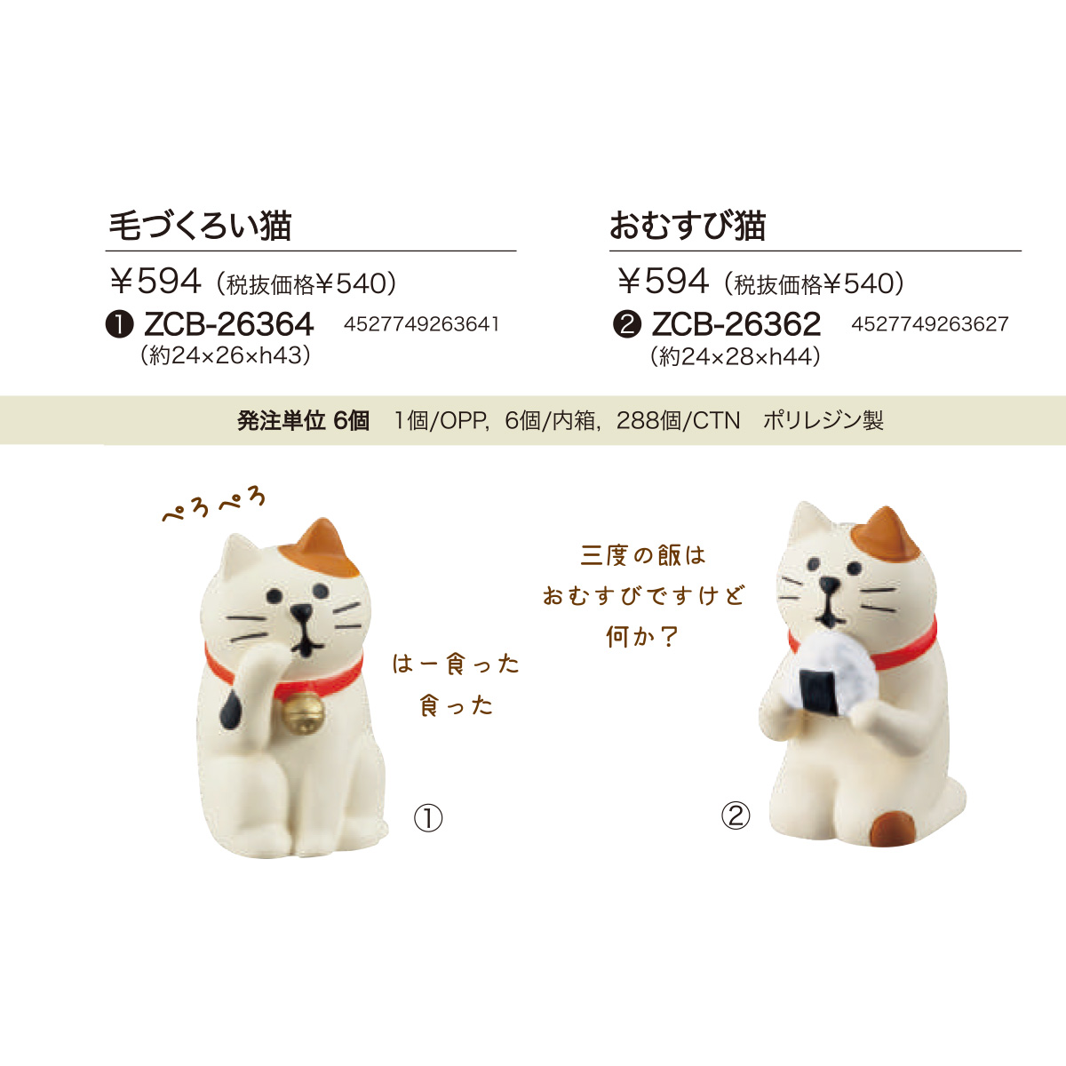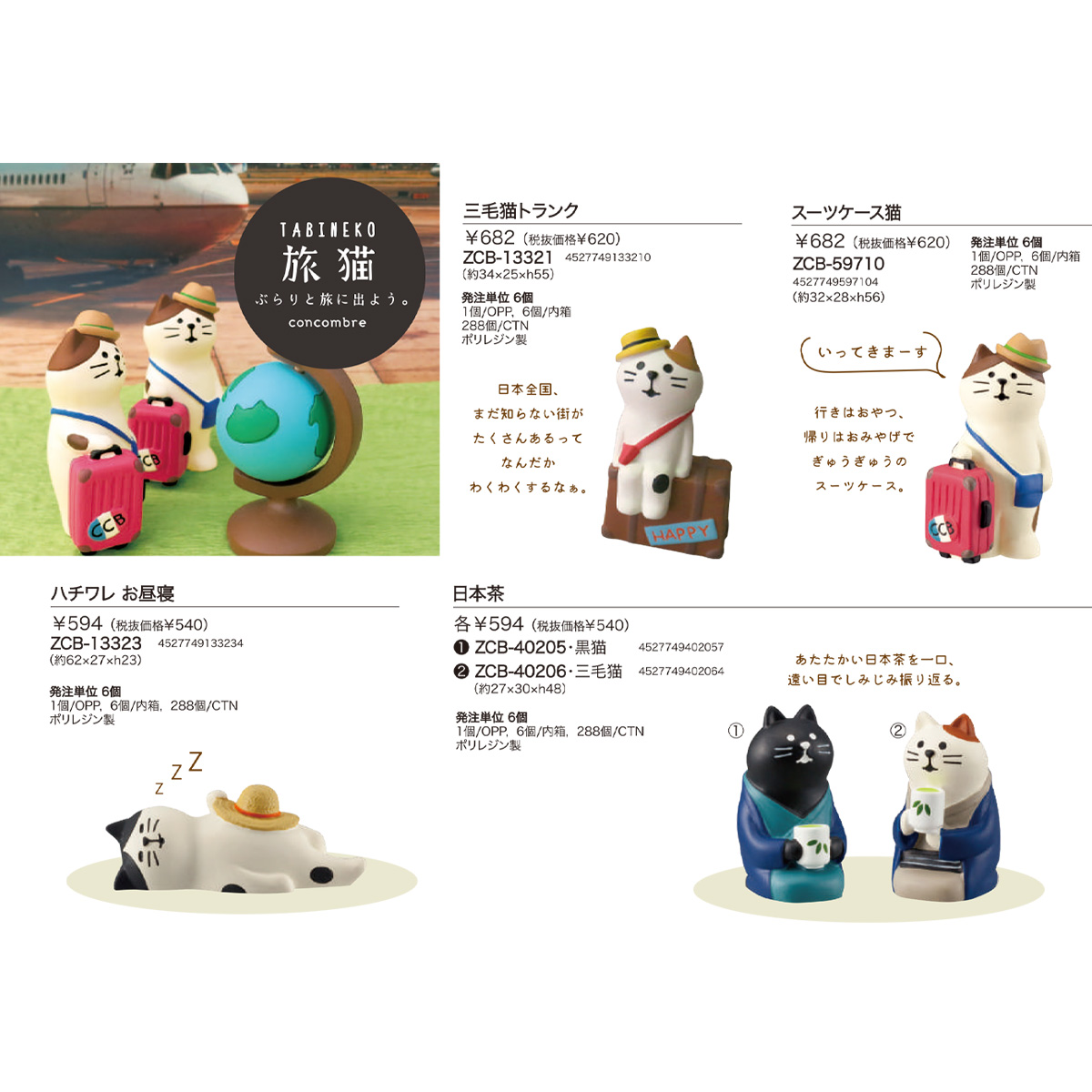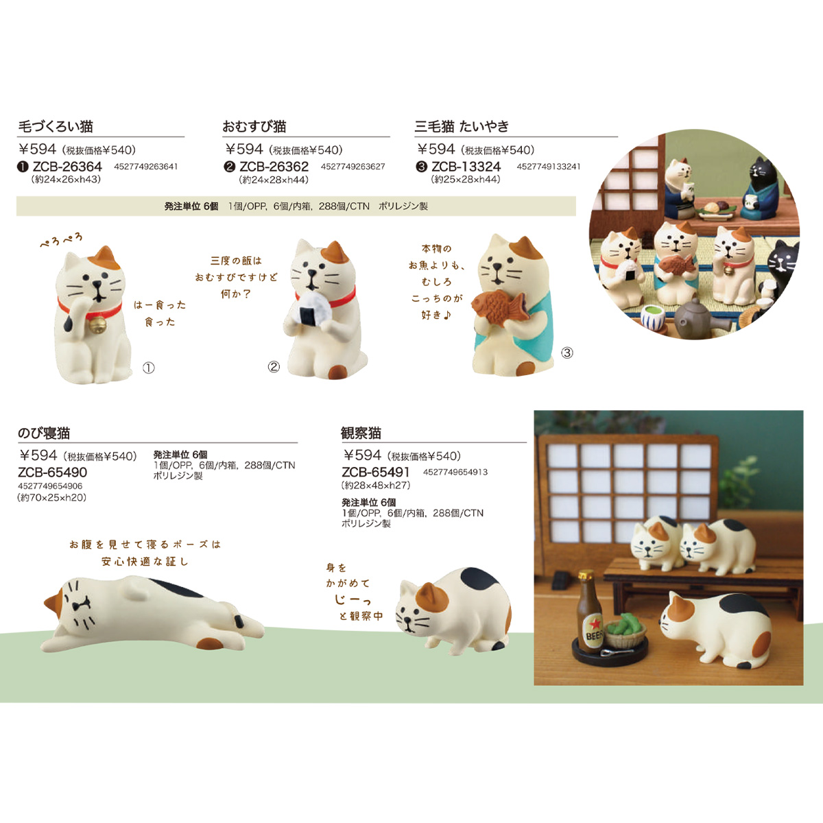 | サイズ | 【ZCB-13321 三毛猫トランク】約34×25×h55、本体重量:約30g 【ZCB-59710 スーツケース猫】約32×28×h56、本体重量:32g 【ZCB-13323 ハチワレ お昼寝】約62×27×h23、本体重量:約30g 【ZCB-40205 日本茶 黒猫】約27×30×h48、本体重量:約40g 【ZCB-40206 日本茶 三毛猫】約27×30×h48、本体重量:約40g 【ZCB-26364 毛づくろい猫】約24×26×h43、本体重量:約20g 【ZCB-26362 おむすび猫】約24×28×h44、本体重量:約20g 【ZCB-13324 三毛猫 たいやき】約25×28×h44、本体重量:約30g 【ZCB-65490 のび寝猫】約70×25×h20、本体重量:約30g 【ZCB-65491 観察猫】約28×48×h27、本体重量:約30g |