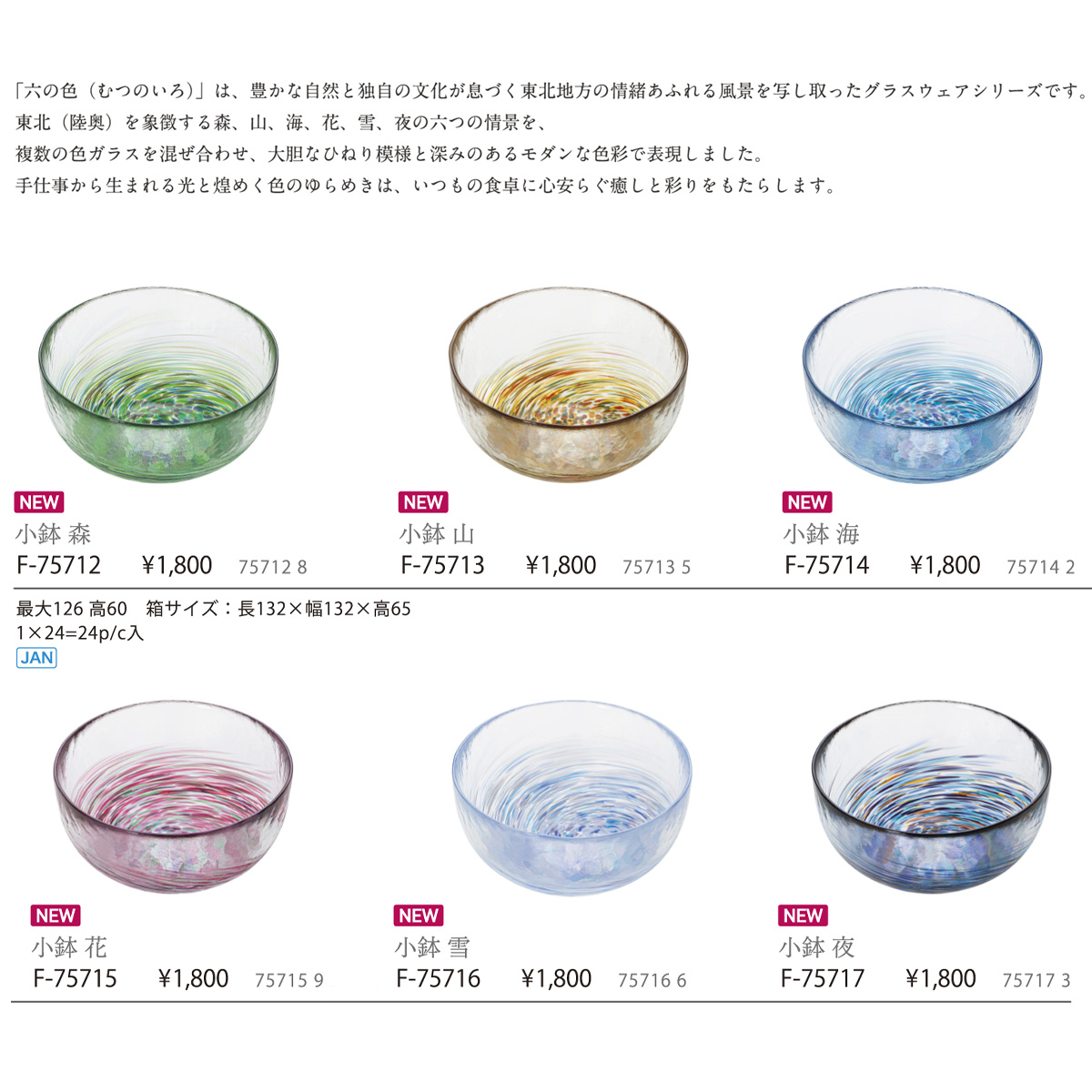 「六の色(むつのいろ)」は、豊かな自然と独自の文化が息づく東北地方の情緒あふれる風景を写し取った小鉢ウェアシリーズです。