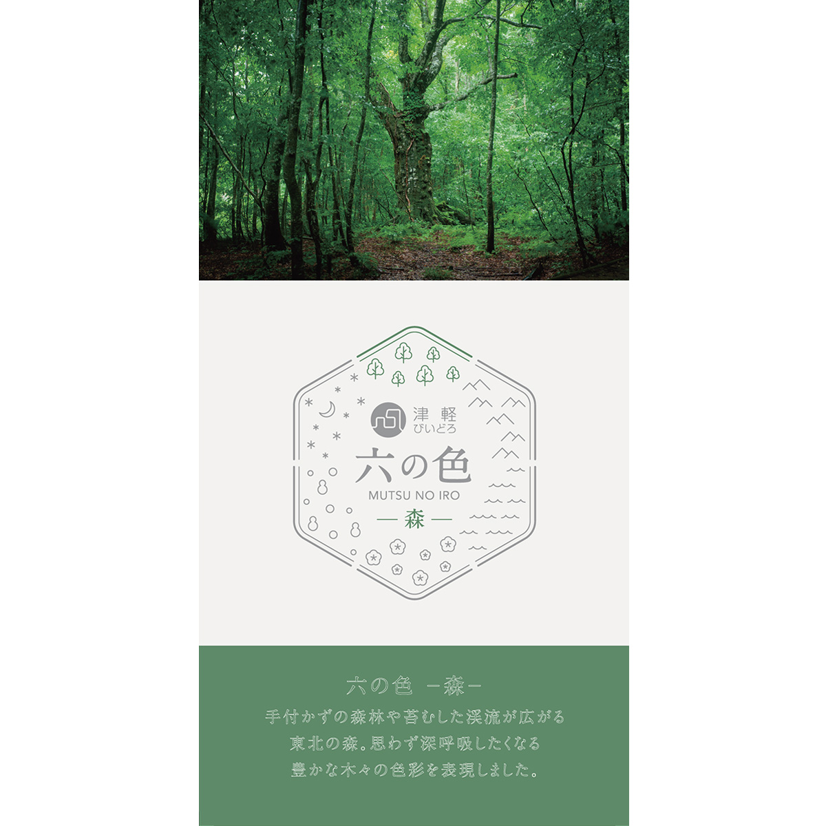 東北(陸奥)を象徴する森、山、海、花、雪、夜の六つの情景を、複数の色ガラスを混ぜ合わせ、大胆なひねり模様と深みのあるモダンな色彩で表現しました。