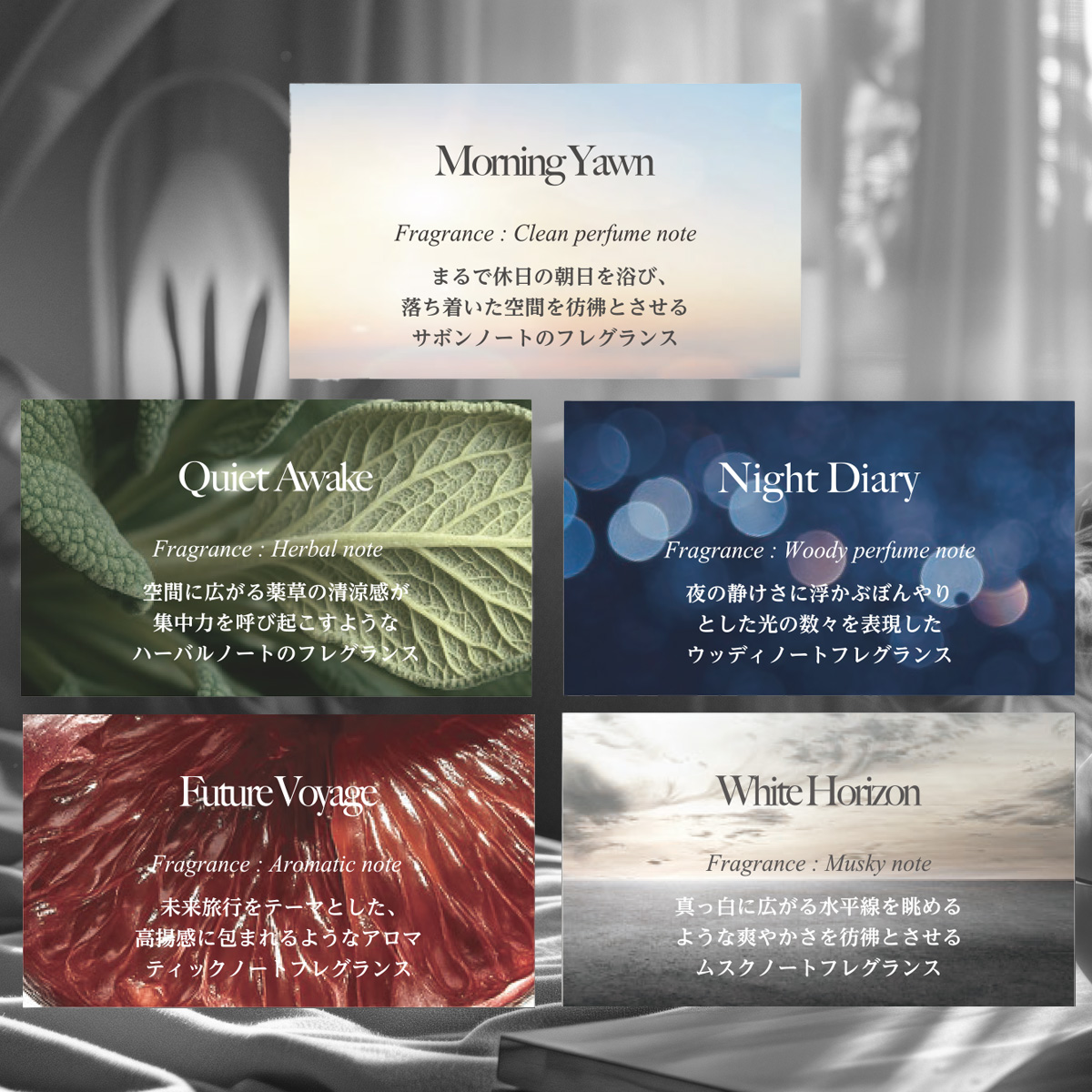 高いデザイン性と上質感を備えたフレグランスシリーズ。
