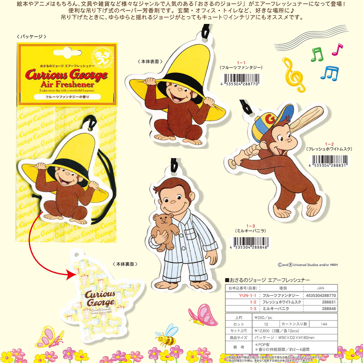 絵本やアニメはもちろん、文具や雑貨など様々なジャンルで人気のある「おさるのジョージ」がエアーフレッシュナーになって登場!