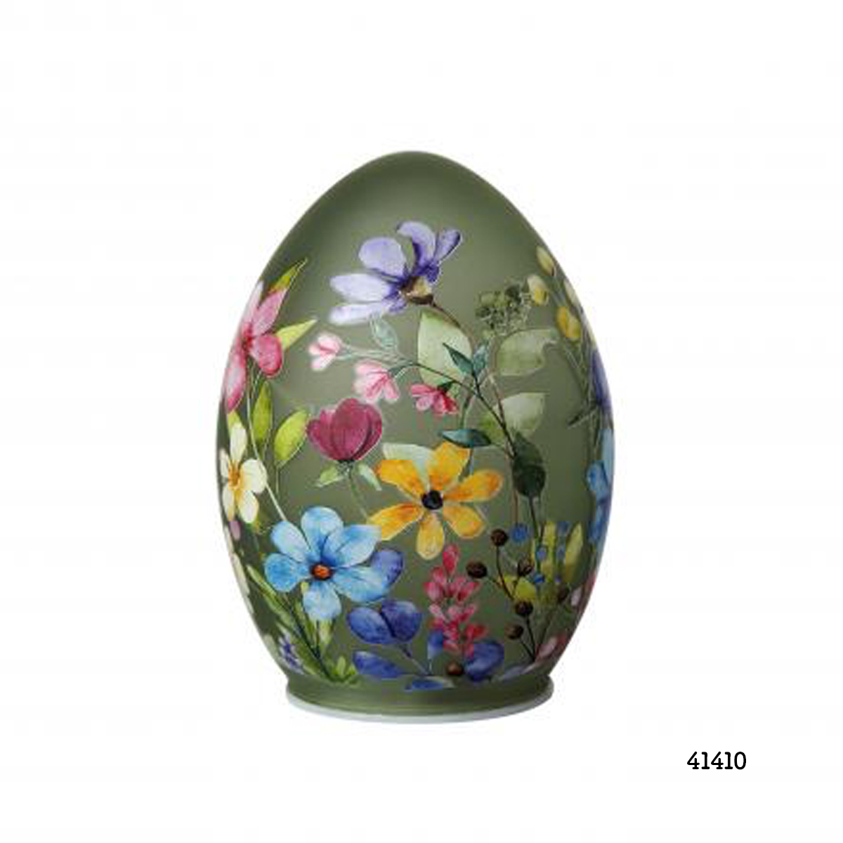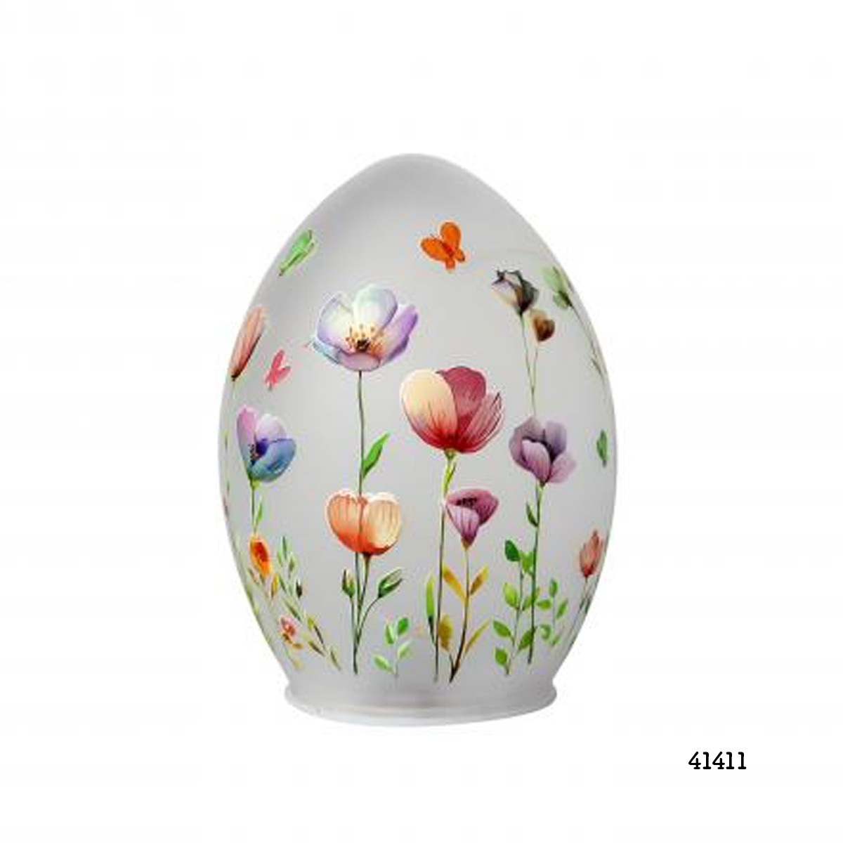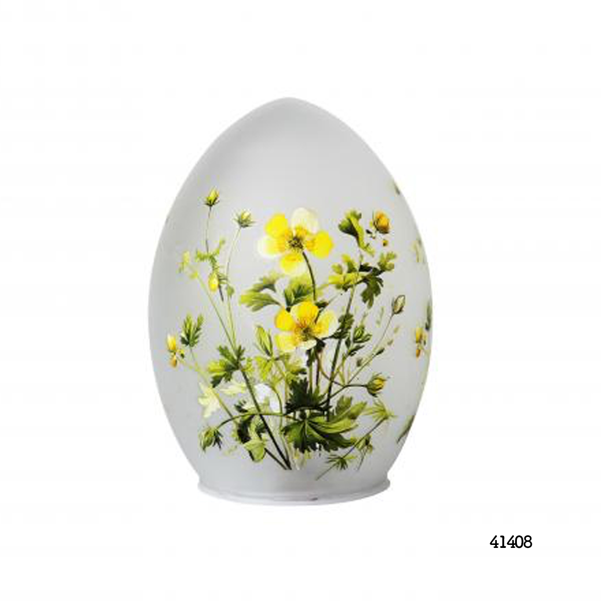 卵の形のすりガラスランプで、押し花風ペイントの可愛い花たちが柔らかい光に照らされます♪