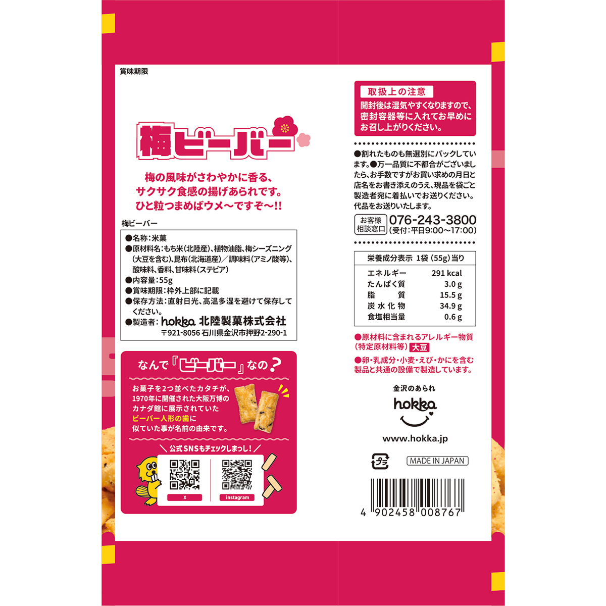 《1月19日発売》【北陸製菓】55g 梅ビーバー【期間限定:2026年3月末終売】
